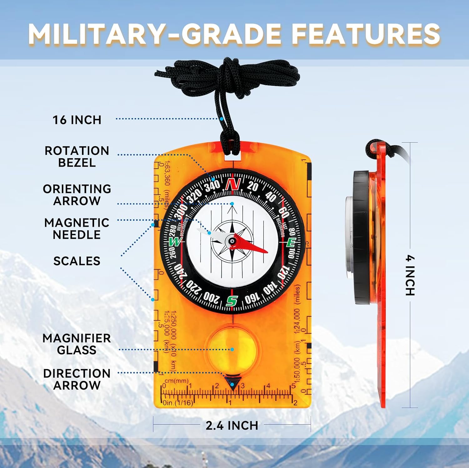 Compact Design: The Hiking Compass is perfect for hiking, camping, and outdoor adventures, offering a lightweight and portable navigation solution
