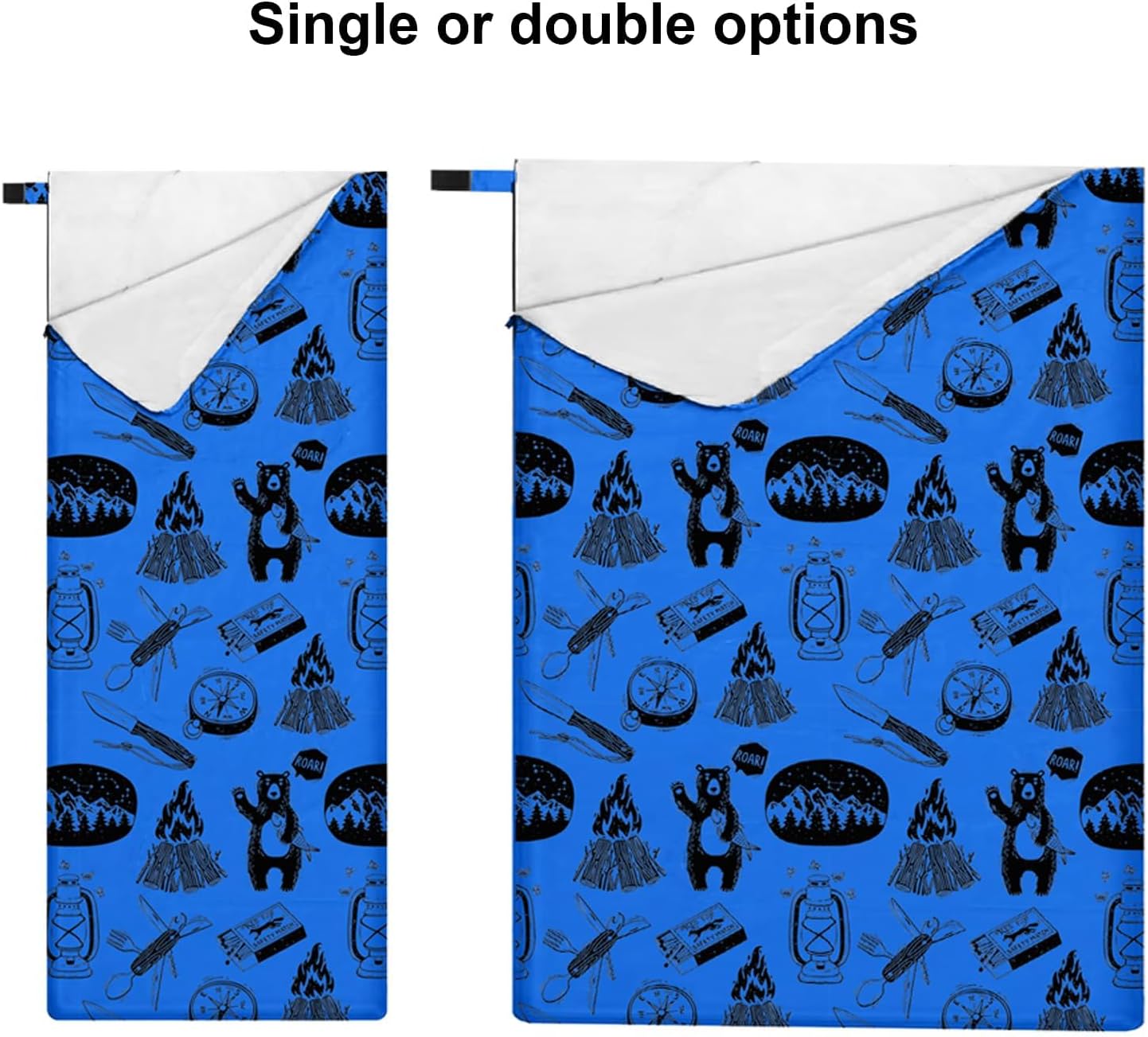 Single or Double – We offer a range of options for our young ones. Picture the joy of siblings snuggled together in this charming 2-person size sleeping bag—it’s sure to bring a smile to your face.