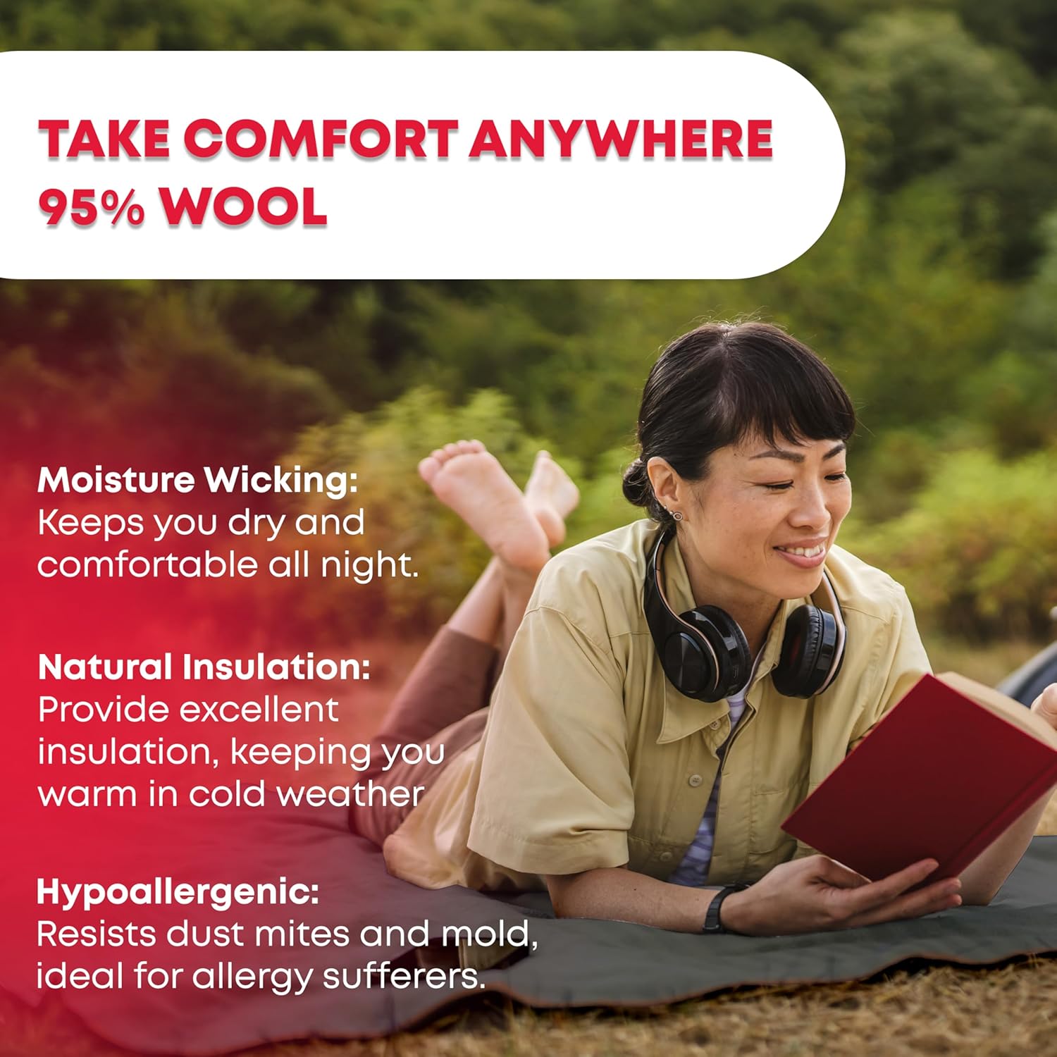 NATURAL WARMTH & DURABILITY: Crafted from 95% wool, this time-tested material will keep you warm even when damp. The remaining 5% comprises hypoallergenic synthetic fibers, enhancing durability and washability while reducing shedding, ensuring your blanket lasts for years.