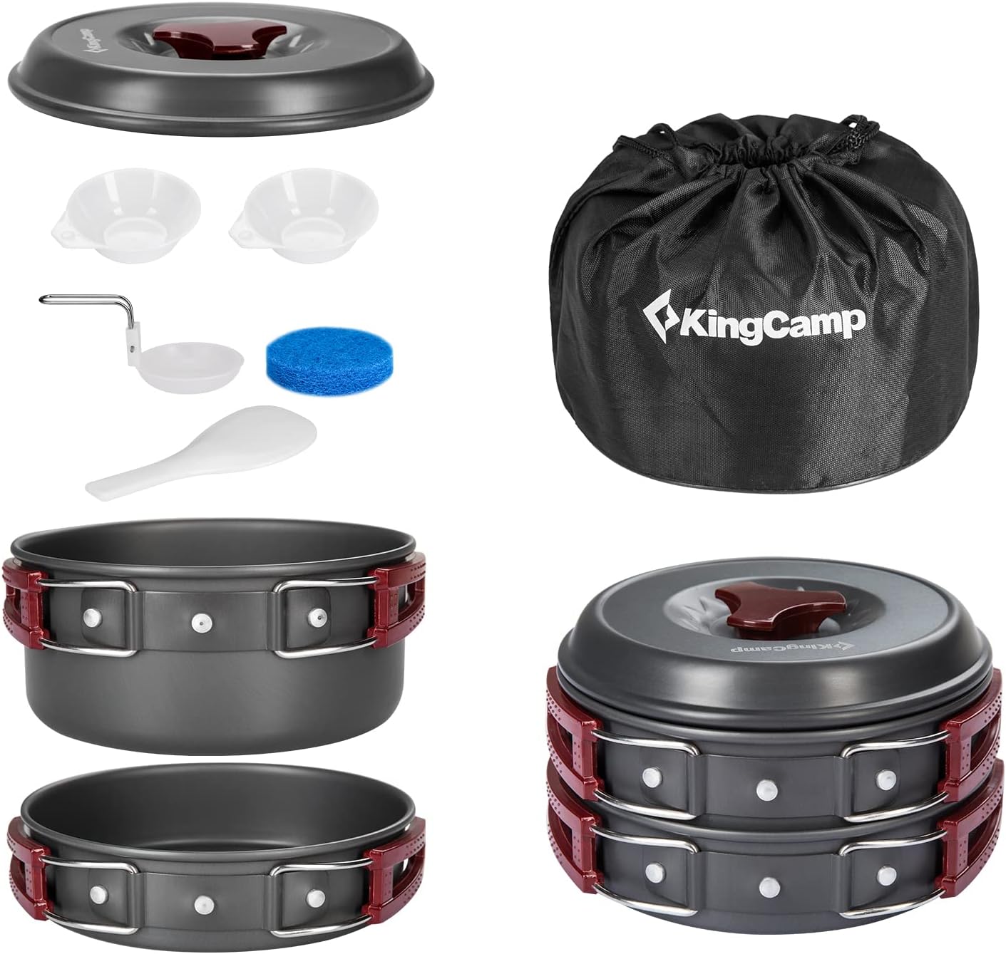 🥾 KingCamp 7/9/18Pcs Camping Cookware Mess Kit Camping Cooking Set Non-Stick Hard-Anodized Aluminum Camping Gear Camping Pots and Pans Set with Tableware for Outdoor Backpacking Hiking Picnic Backyard — Review, Key Features & Current Price