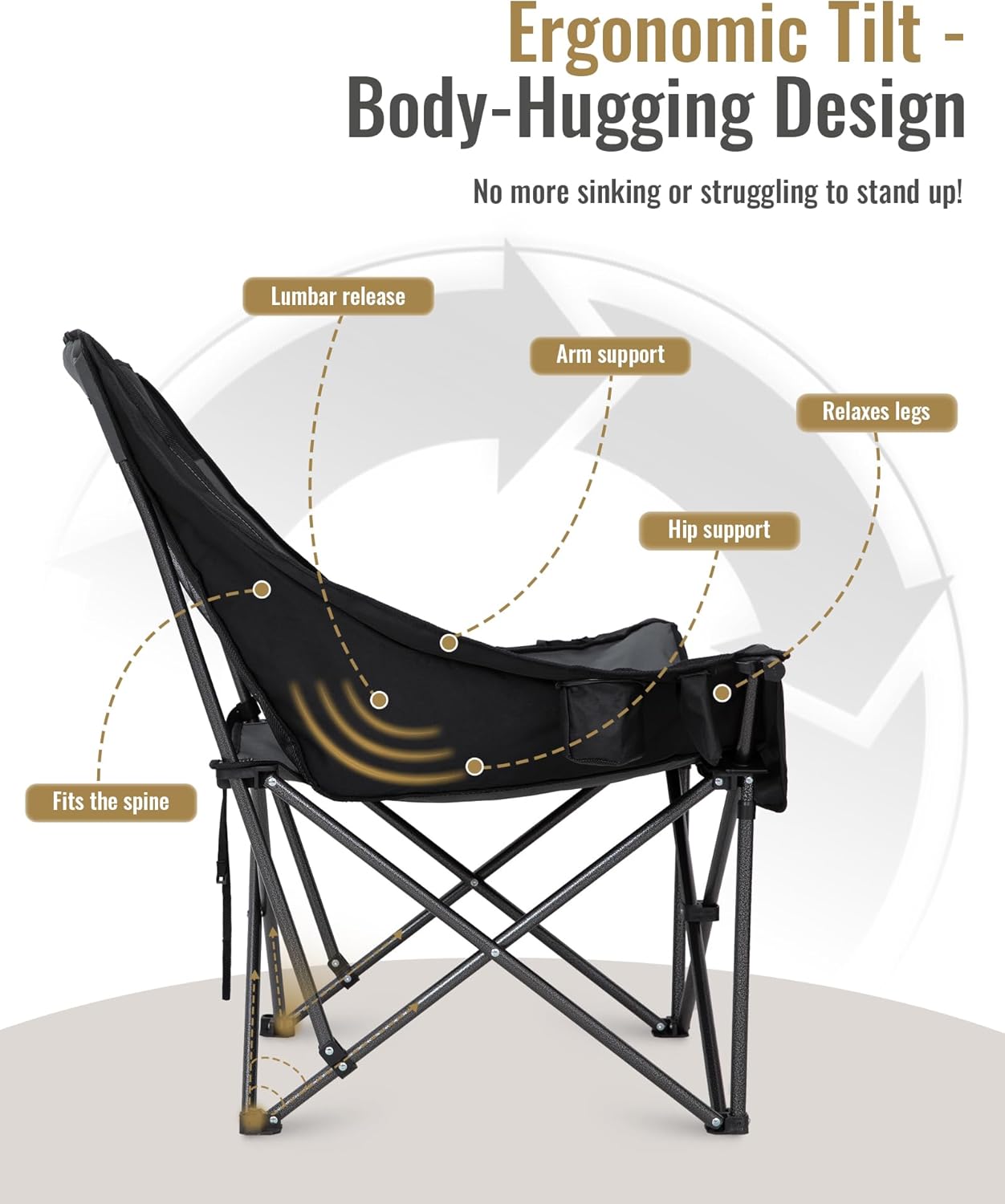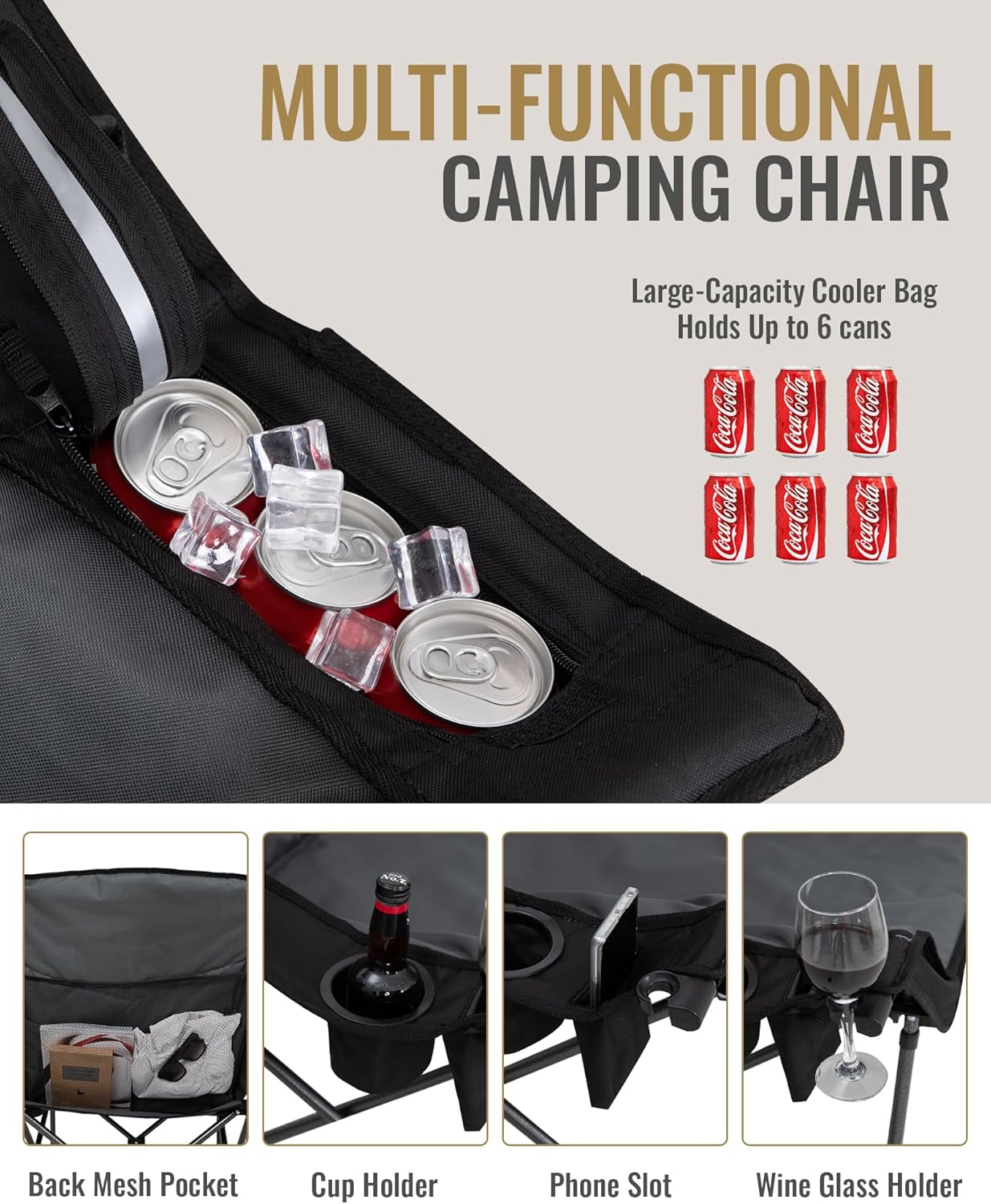 【Oversized Comfort】Experience sofa-like relaxation in our extra-wide 41″(10% wider) seat with wide and large backrest and deep 21.5″ seat depth – perfect for taller people.The thickened padding and wrap-around design provide full-body support, while the premium Oxford fabric offers cloud-like comfort for hours of camping, tailgating or backyard lounging.
