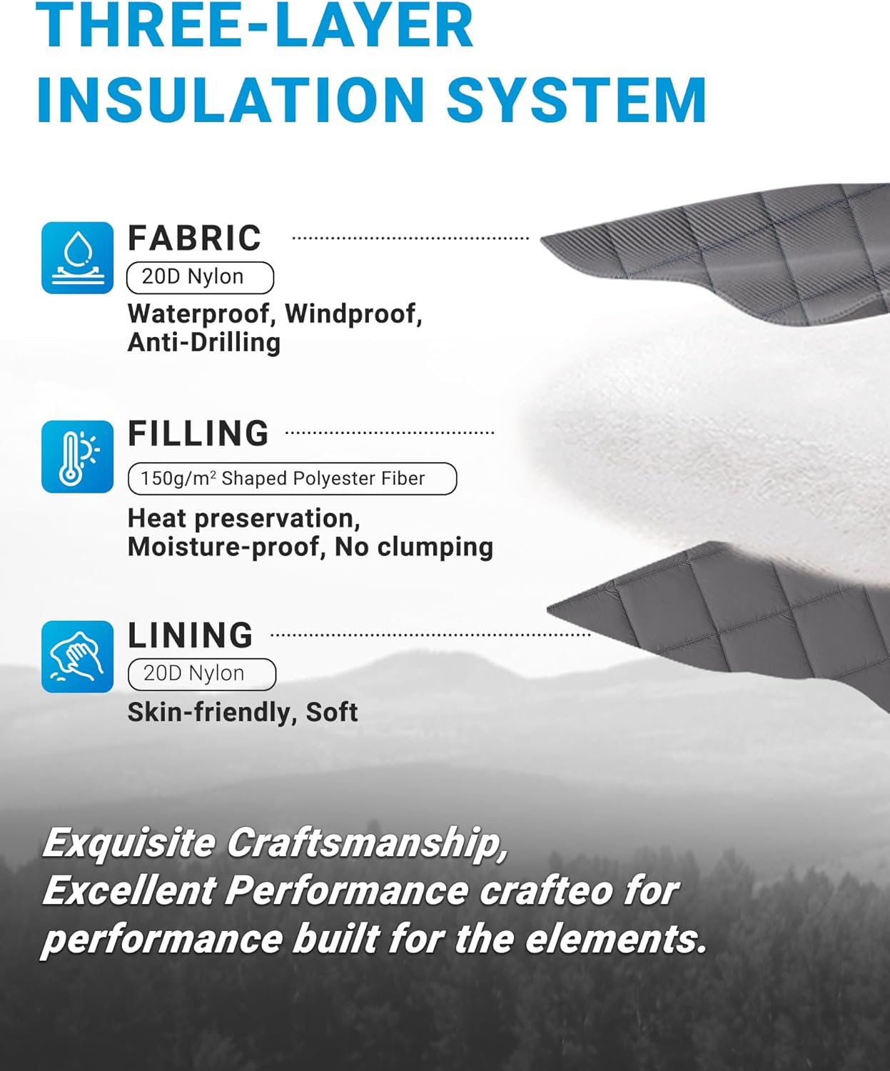 COZY WARM LOFT FILL WITH DURABLE 20D NYLON SHELL FOR ALL-WEATHER WARMTH: Filled with 150G/㎡ of hypoallergenic Warm Loft fiberfill, this camping blanket provides warmth and softness similar to natural down, without allergens or animal materials. The tightly woven 20D nylon shell is water-resistant and windproof, and helps trap body heat and block cold air—enhancing insulation to keep you warm and comfortable at campsites, beaches, or mountain cabins.