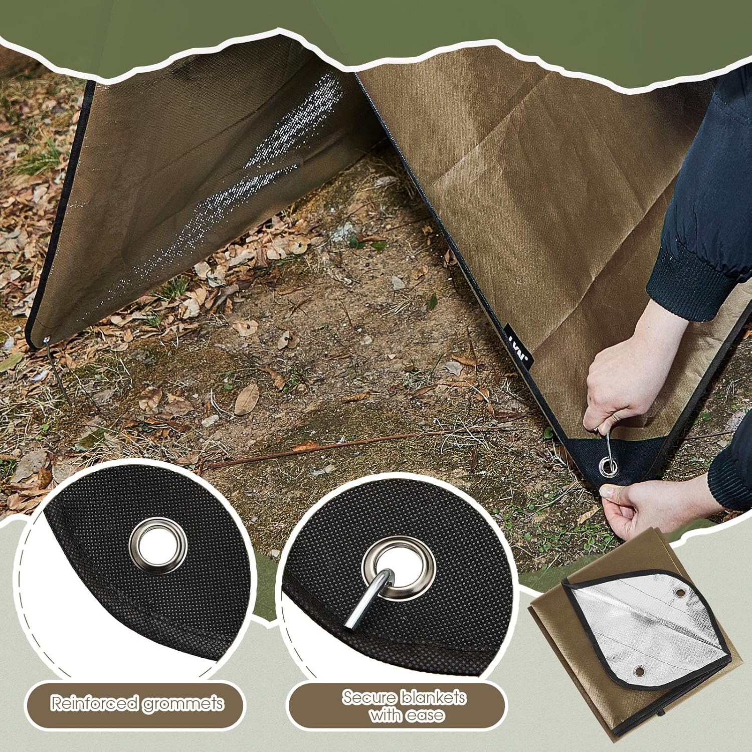 Enough for Daily Use: you will get 2 pieces of thermal blanket for camping in brown with 8 pieces of iron stakes, which can satisfy your daily use and emergency demands, bringing convenience to your life