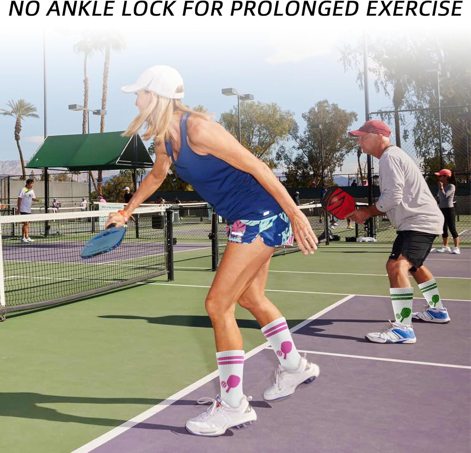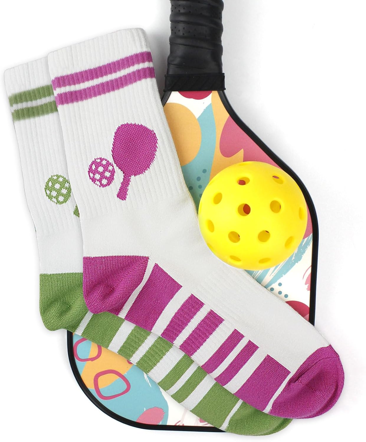 The video showcases the product in use.The video guides you through product setup.The video compares multiple products.The video shows the product being unpacked. Pickleball Socks 2 Pack,pink + green Merchant Video