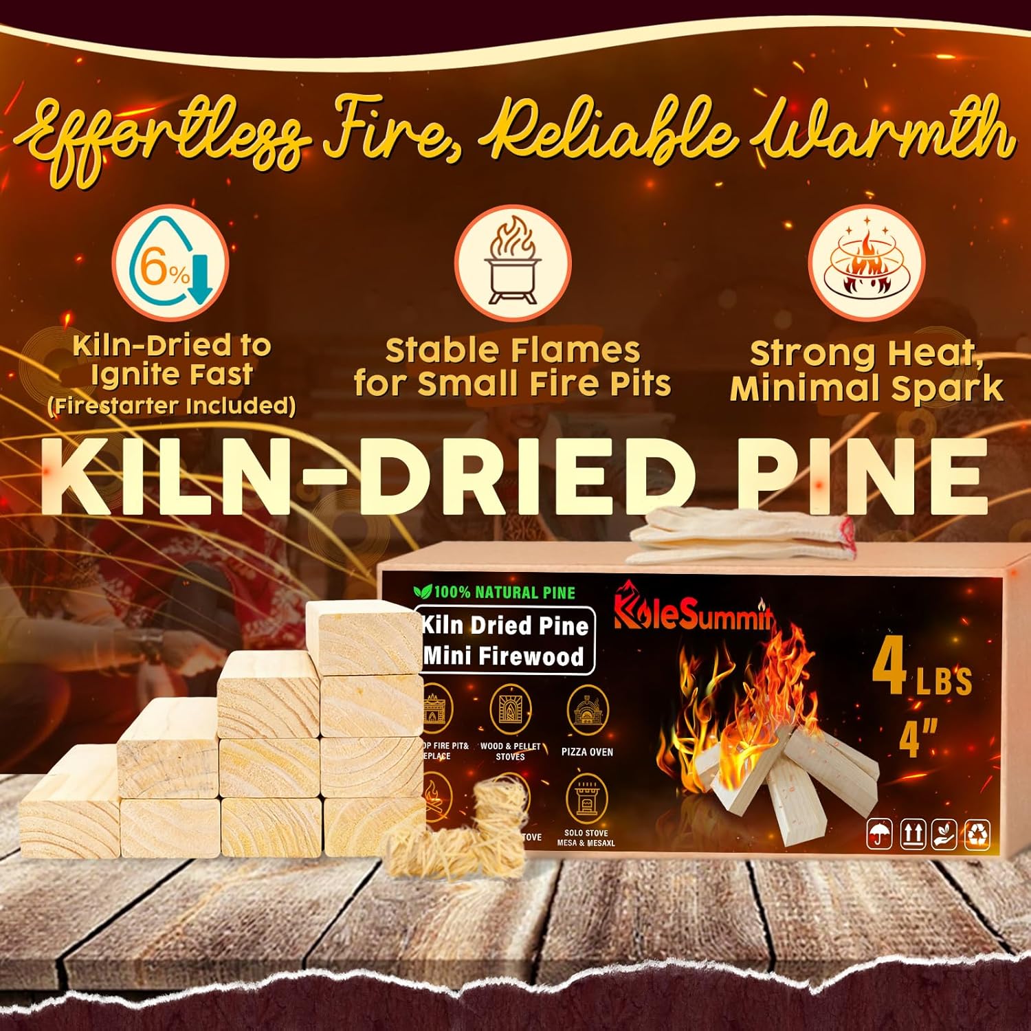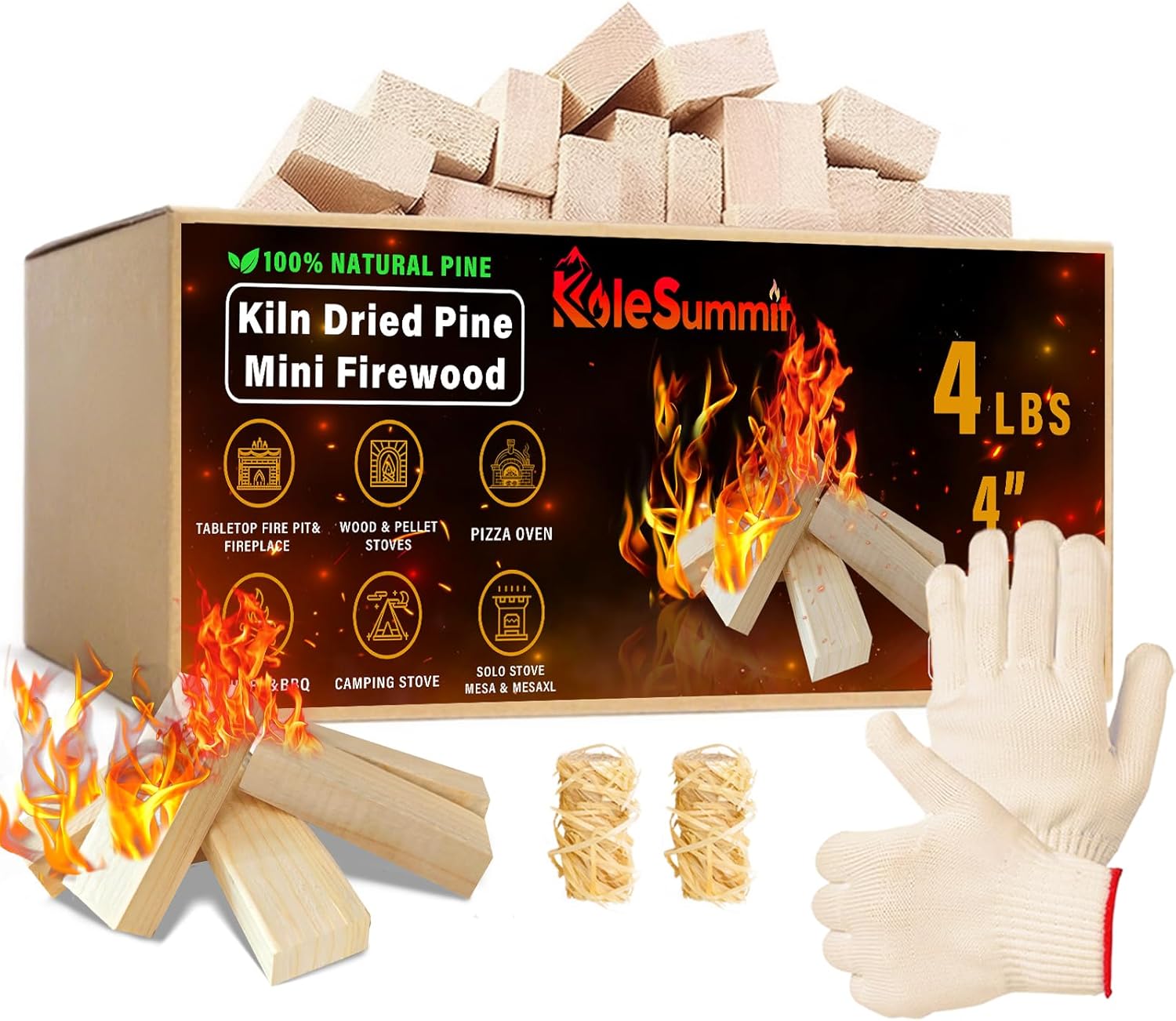 Perfectly Sized Fire Pit Accessories: Each 4-inch Mini Fire Stick fits effortlessly. Our compact 4 lb box (333 cu in) is easy to store and carry. Instantly fuel your tabletop fire pit, Solo Stove Accessories Mesa, Pizza Oven, or BBQ Grill.