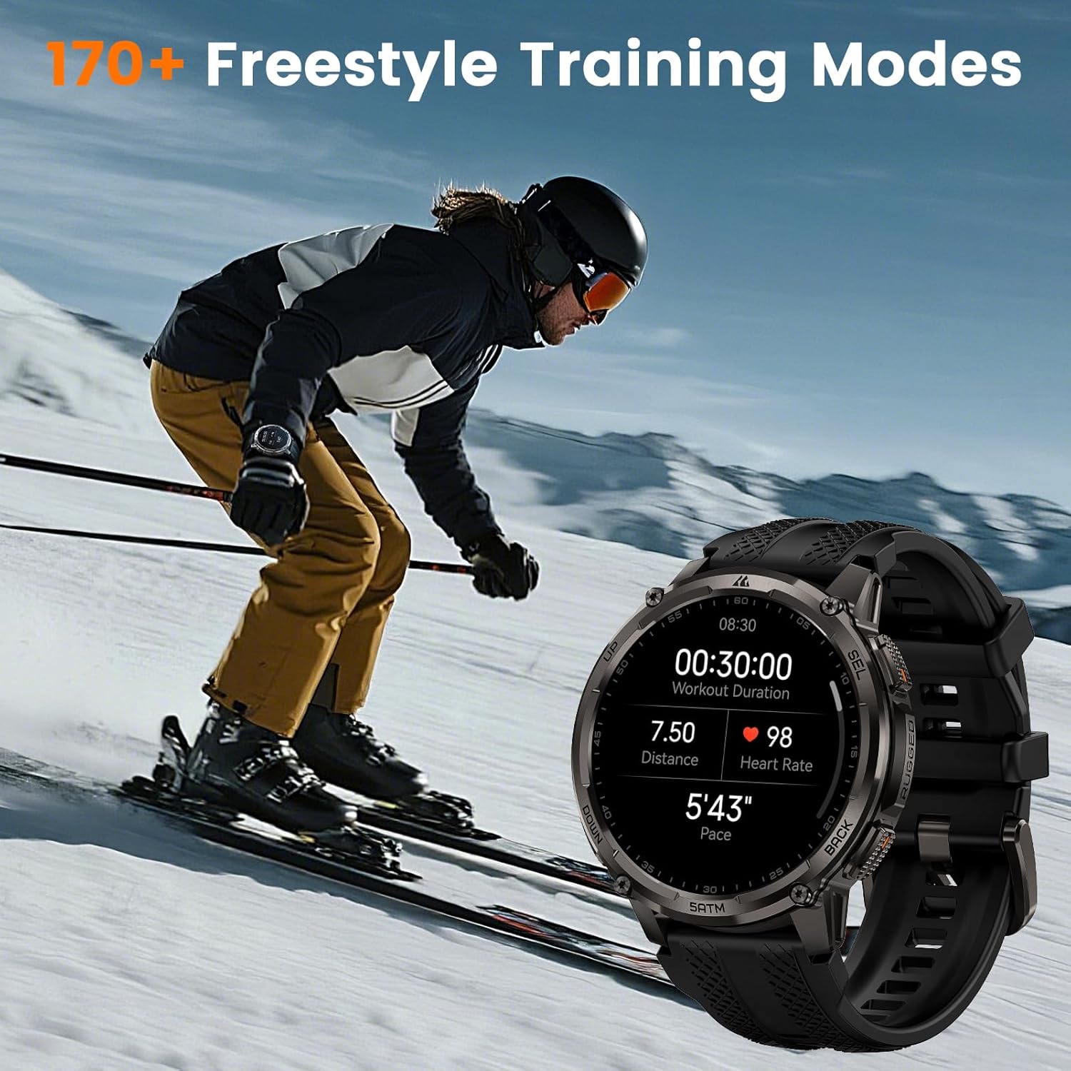 ➤【170+ Freestyle Training Modes】The sport watch supports 170+ freestyle training modes, such as walking, running, cycling, basketball, football, etc. The smartwatch also records key data during your workout (e.g., distance, calories, exercise time, etc), along with more workout details in the App, which helps you achieve training goals and lead a healthier lifestyle.