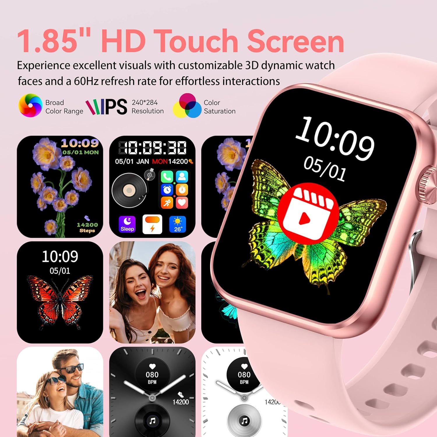 【Bluetooth Phone Call/Answer and Smart Notification】This smartwatches have a built-in microphone and speaker and uses the latest bluetooth 5.4 technology, allowing you to answer and make calls directly on your fitness watch. The fitness tracker watch supports push notifications from commonly used social network, so you can instant view them at any time without picking up your phone (if the message or notification is too long, it will not be fully viewed). Note: The smartwatch cannot reply to messages