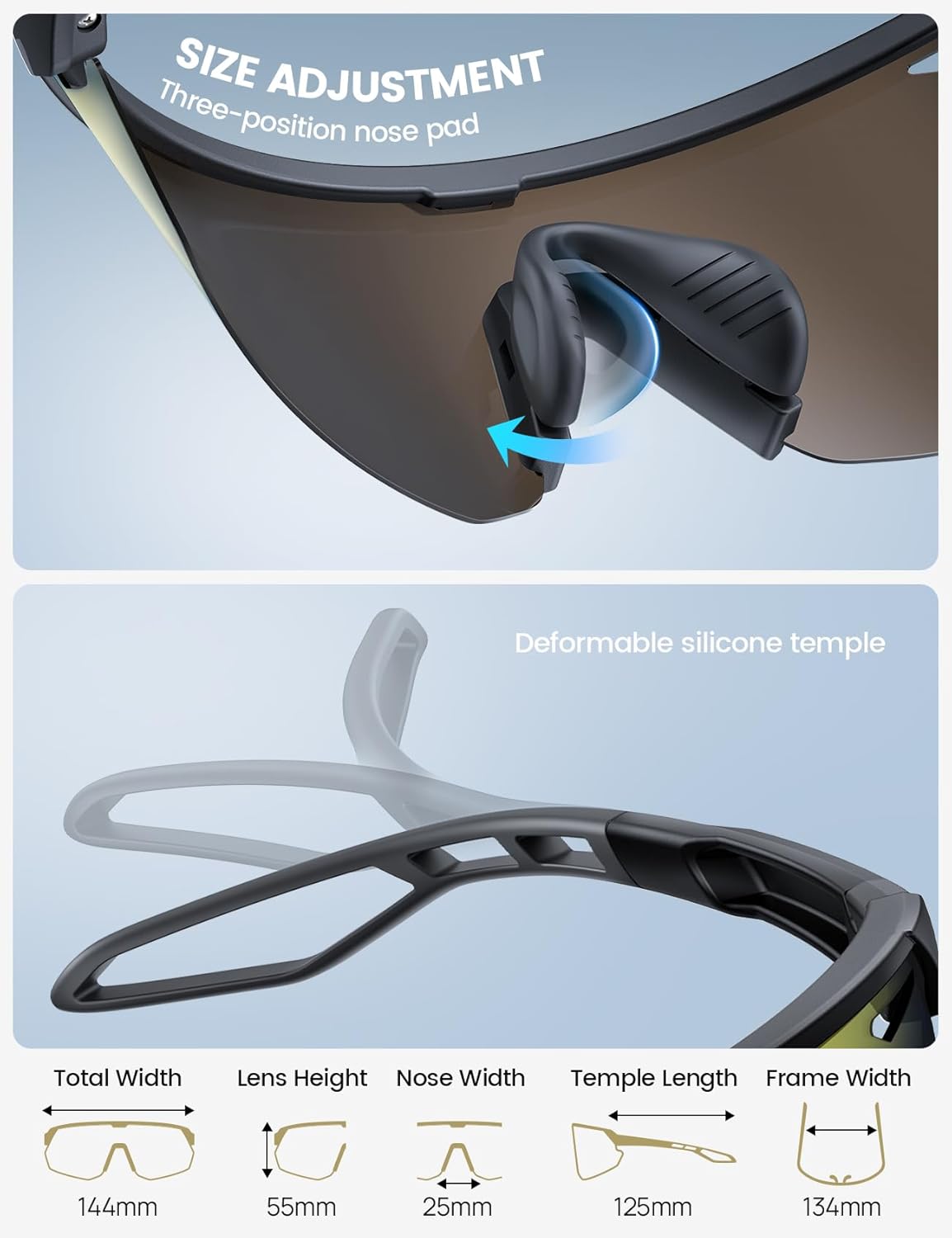 【Impact-resistant TAC Lens & Super Wide Field of View】The cylindrical lens design is matched with the surround structure, which allows you to have a wider field of view for safer riding, and also effectively reduce air resistance. With impact-resistant TAC lenses, keeping you safe during exercise.