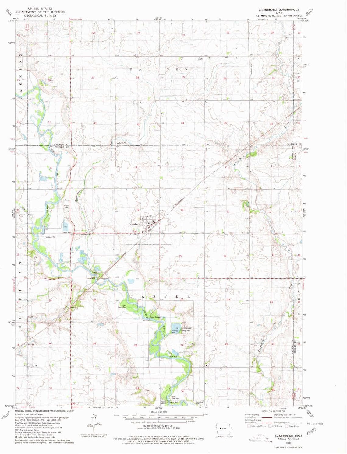 USGS topographic map of Lanesboro, IA, at 1:24000 scale. High-quality paper print. Perfect for wall maps.