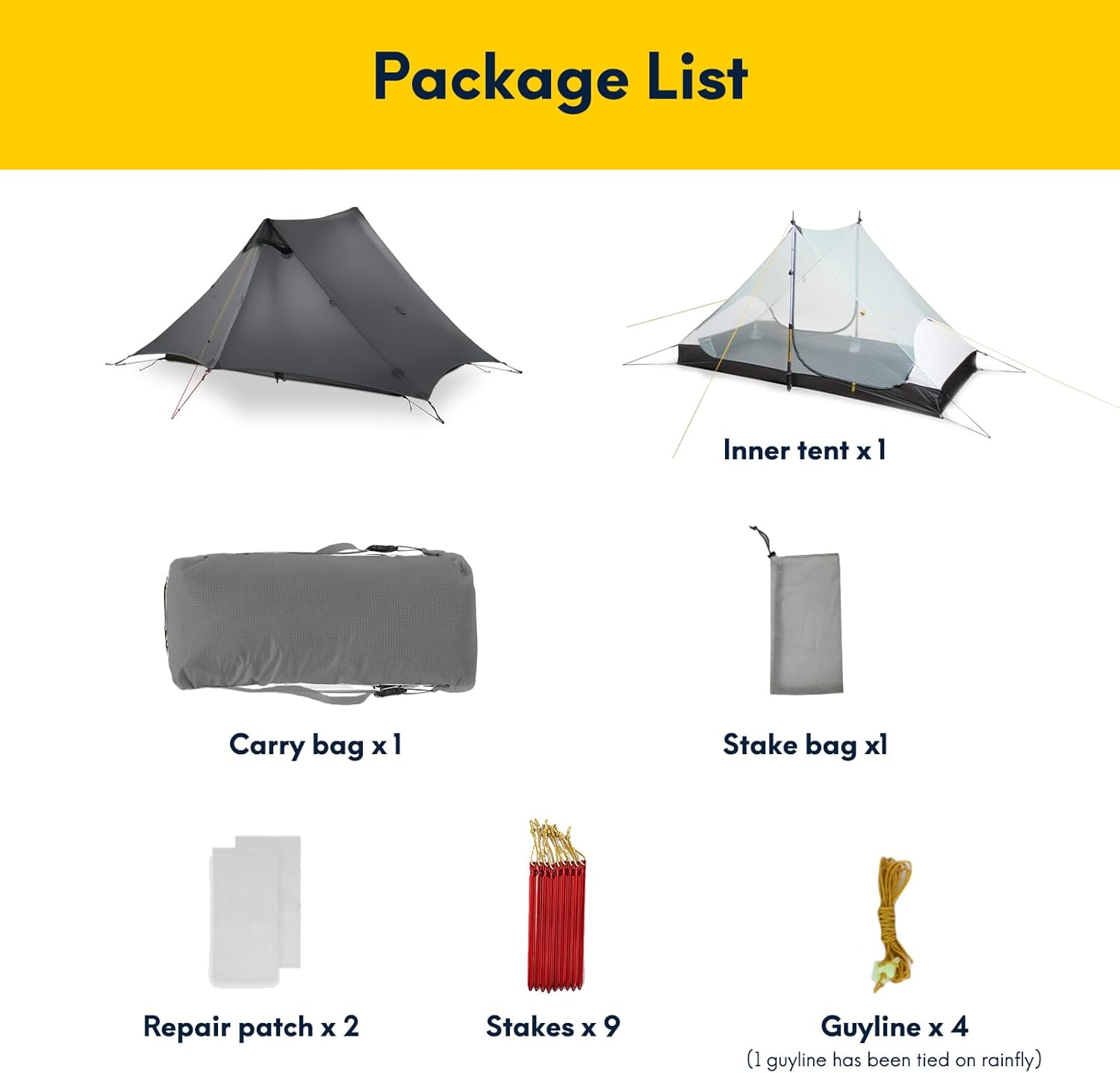 QUICK SETUP TENT: Easy to setup and take down in any conditions. Connected the outer and inner tent with hooks, reinforced by wind rope and tent stakes. Assemble in 5-10 mins with the hiking pole (NO TREKKING POLES PROVIDED)