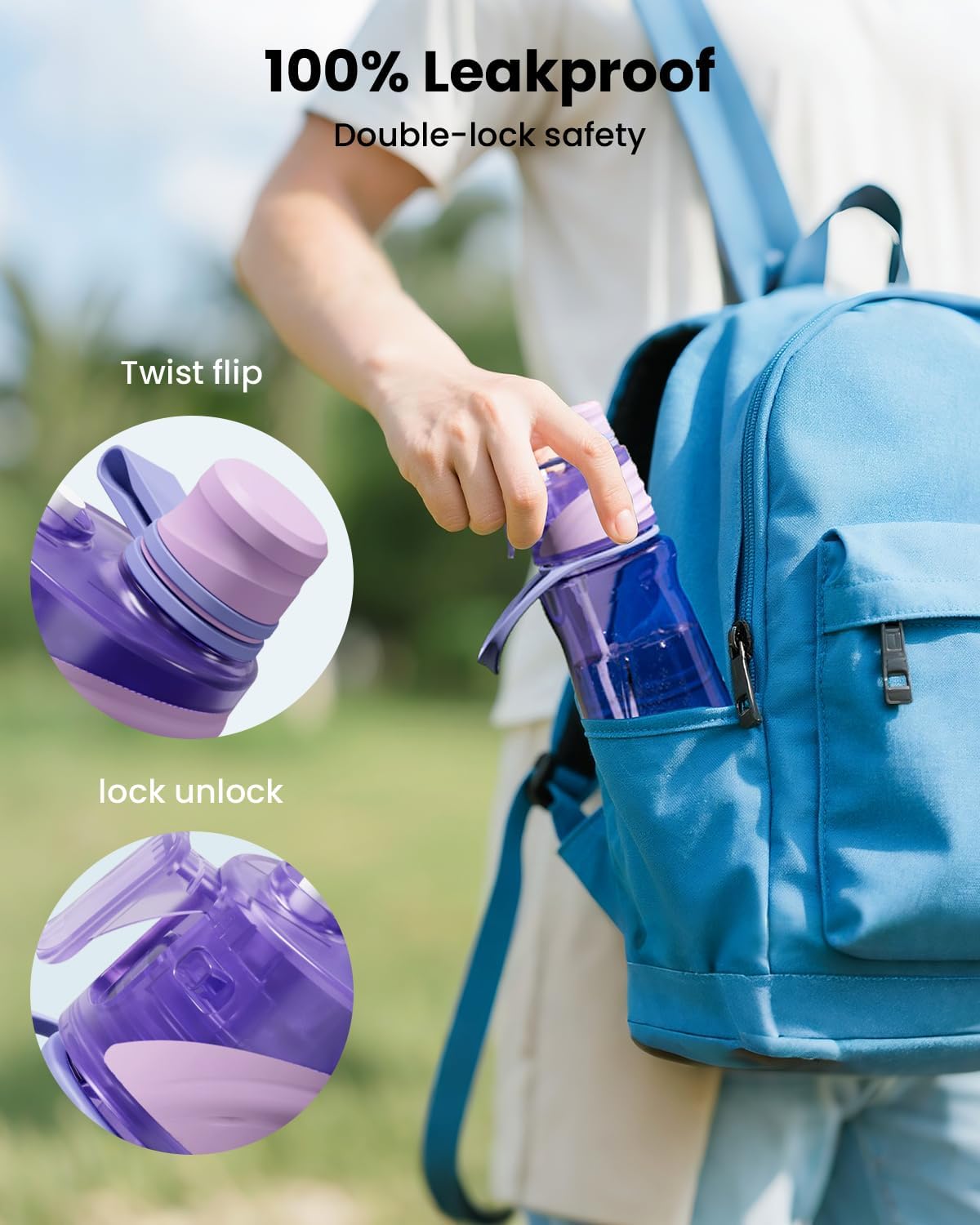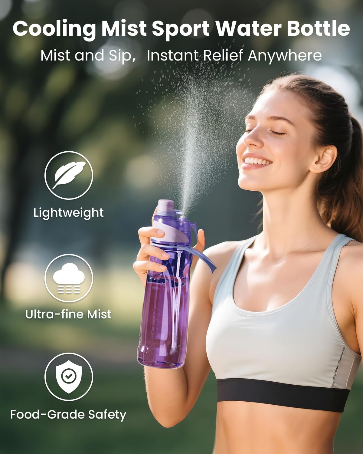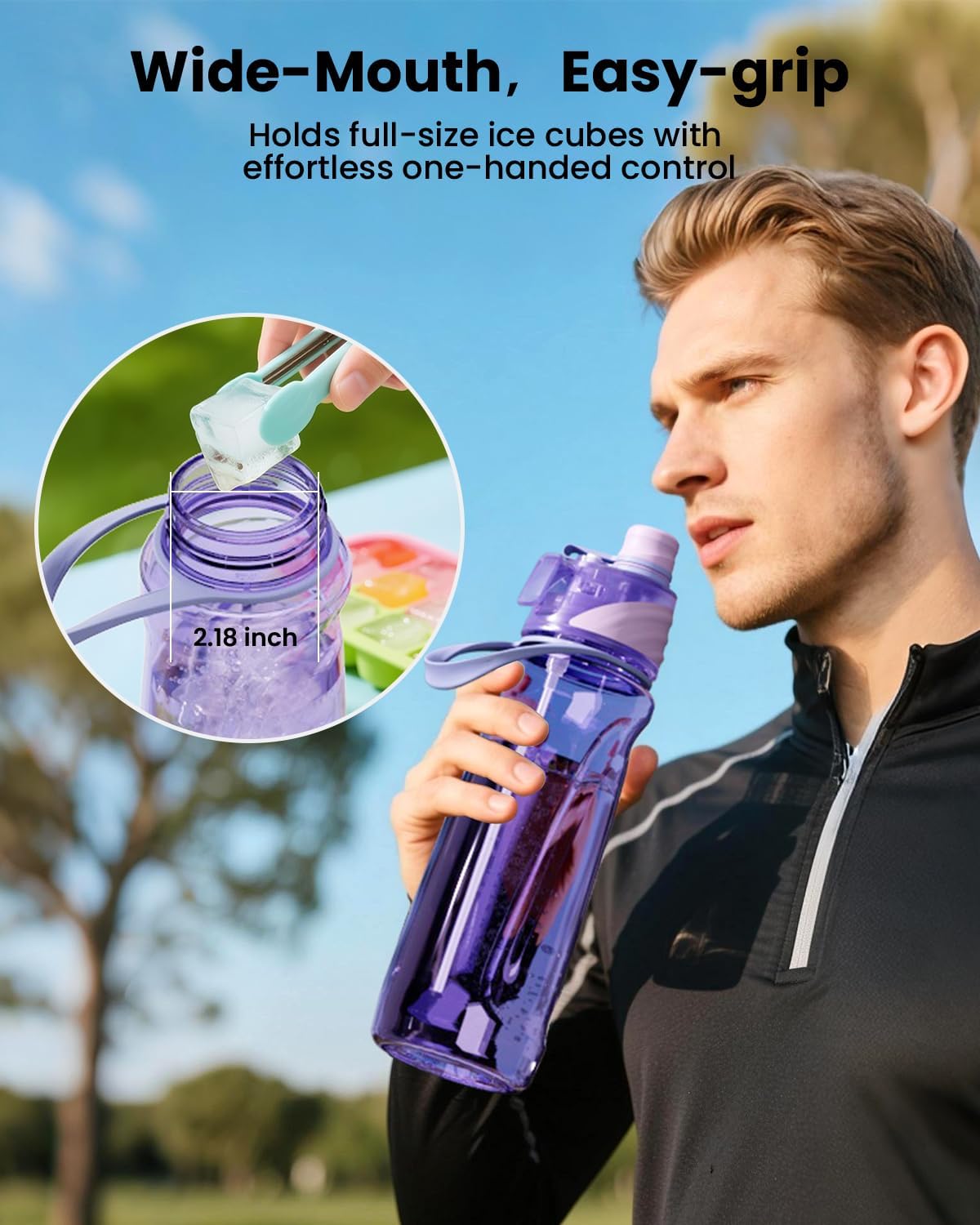 Dual Sip & Misting Cooling Function: This sports water bottle features both drinking spout and misting capability. With just a press, enjoy a refreshing burst of ultrafine mist that instantly cools you down – perfect for staying hydrated and cool during hiking, gym sessions, or daily commutes!