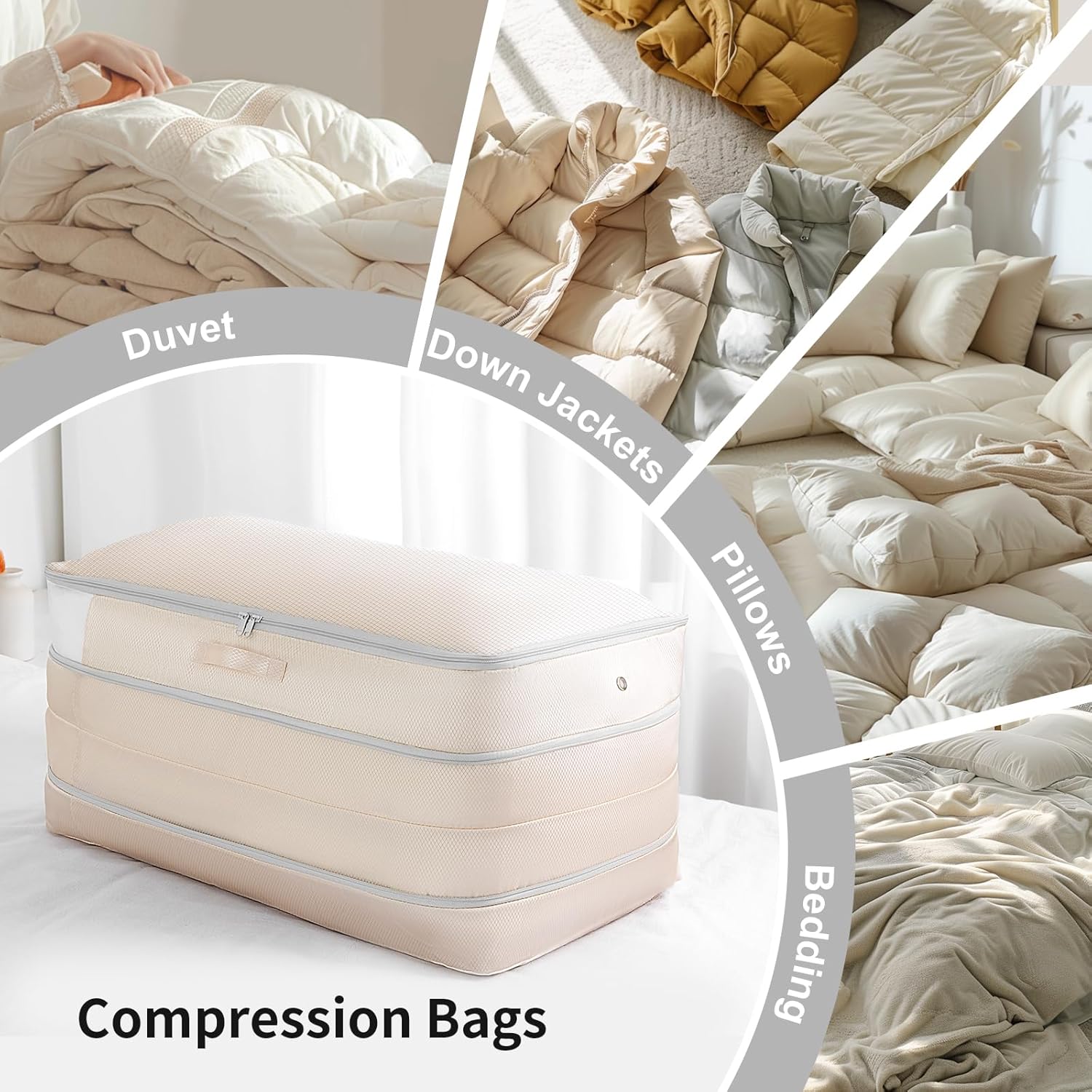 [Large Capacity for Bulk Storage]With a spacious design capable of holding up to 3-4 queen-size comforters when uncompressed, this comforter storage organizer provides ample storage for your household items. It expands to accommodate larger loads while its compression feature minimizes bulk as needed, offering greater flexibility in organizing your storage space
