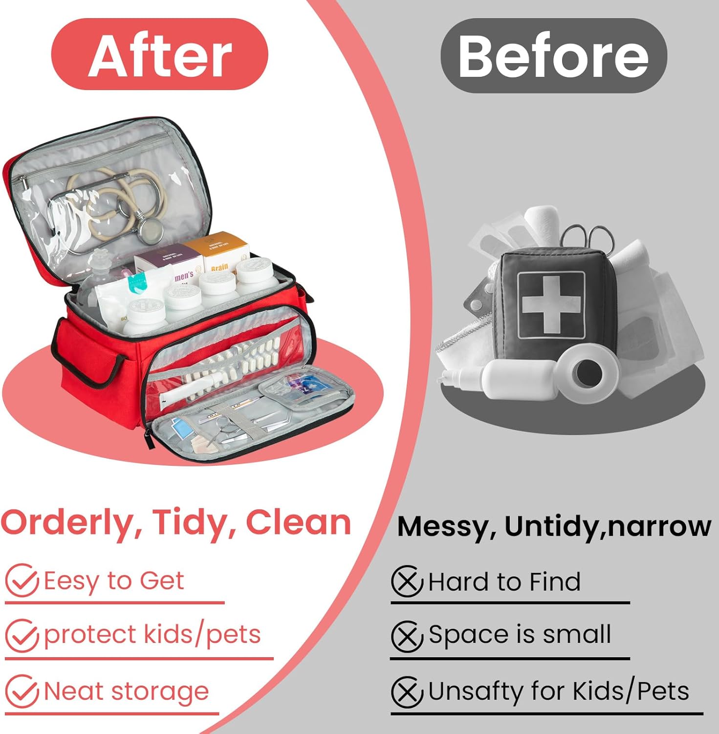 Vivid Red Design: The striking red of this first aid box makes it instantly recognizable and hard to miss, ensuring you can quickly find it in urgent moments. The medicine pouch’s standout color allows you to easily locate and reach your medical supplies right when they’re needed most.