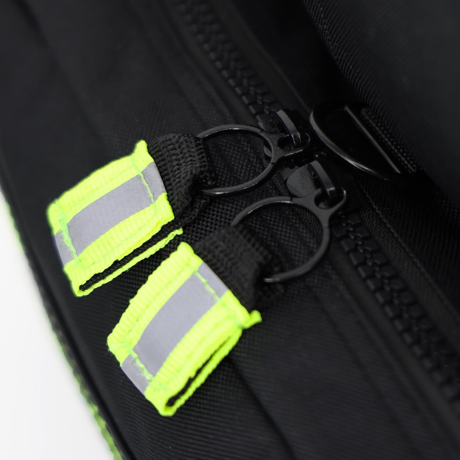Padded shoulder strap has reflective striping sewn right into the strap