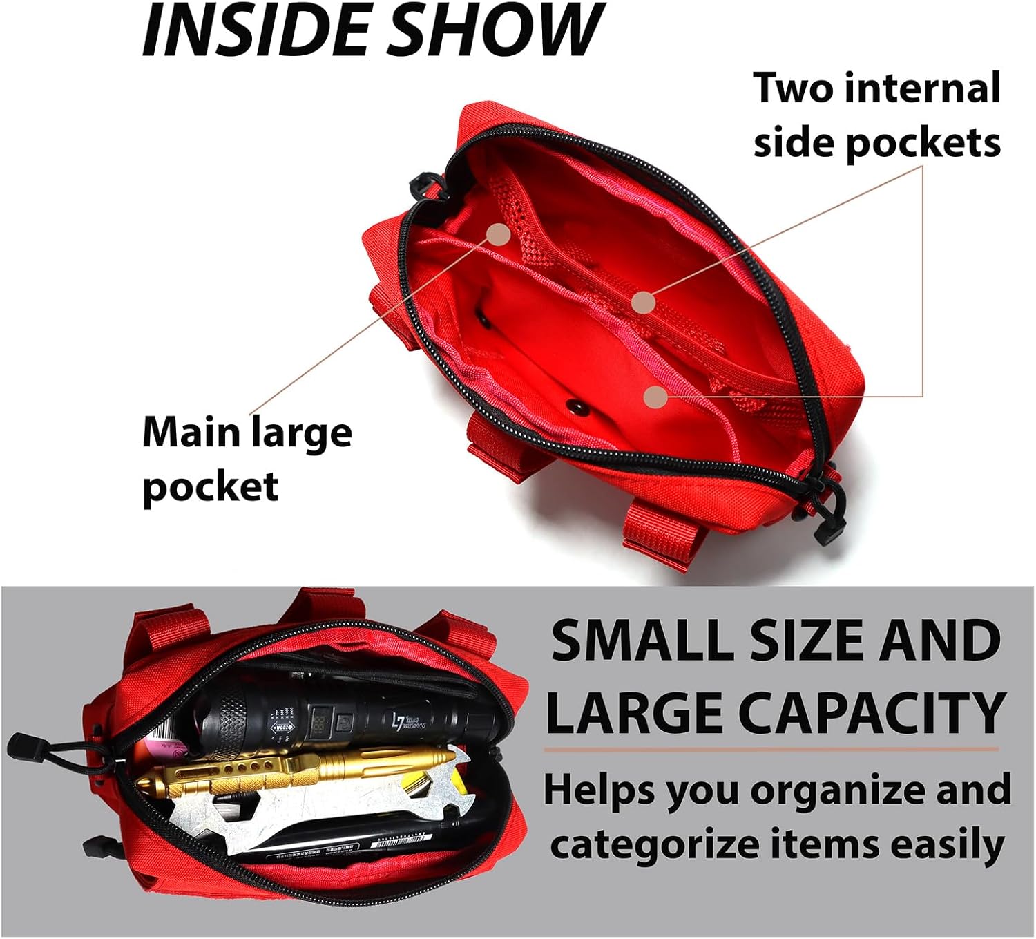 【Spacious Capacity】As a functional Admin Pouch, it has 2 compartments, elastic webbing to easily hold utility knives, flashlights、handheld GPS, compass, tactical pens, tape measure, fire starter, markers, paracord, and other essentials. This Admin Pouch keeps items secure and ready for quick access, perfect for organized storage in Tactical Molle systems.