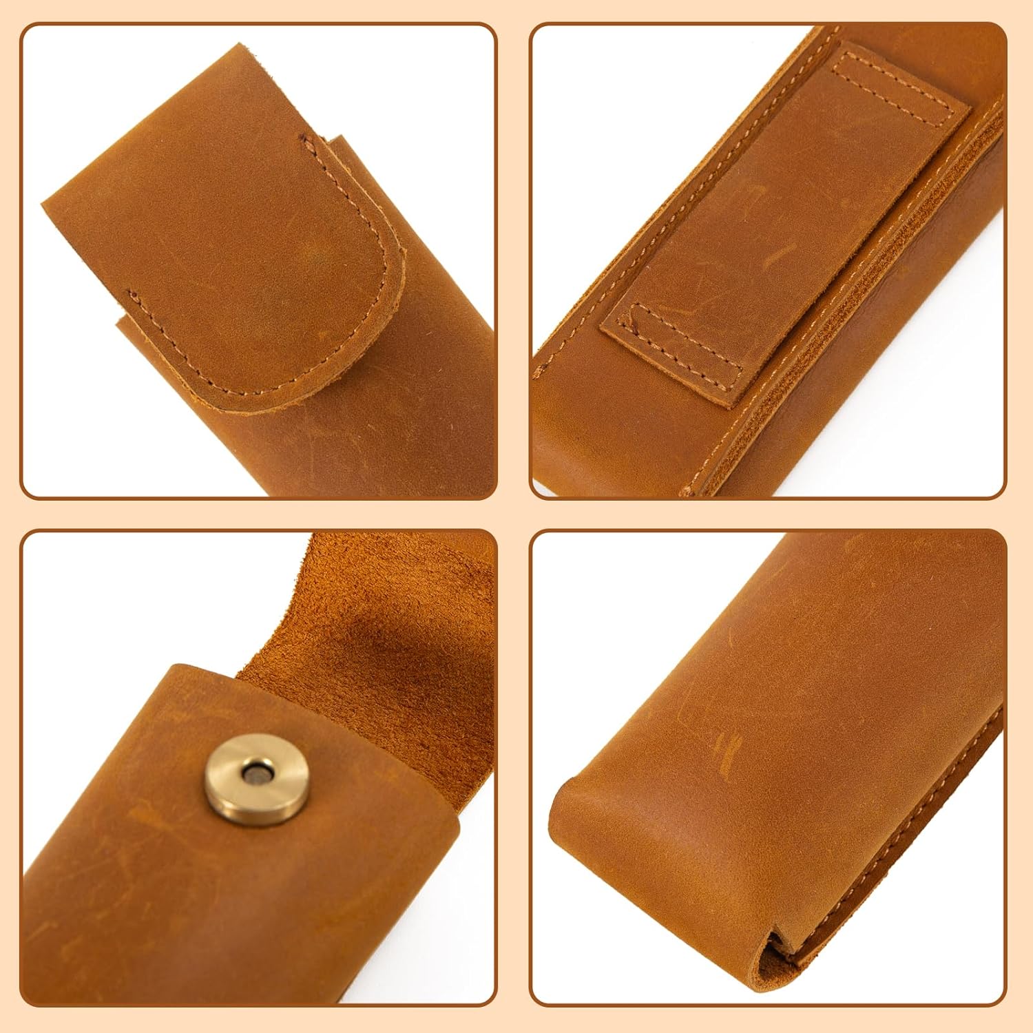 Crafted from durable crazy horse leather, our Leather Multitool Sheath features fine and tight stitching, providing a smooth, scratch-resistant surface that ensures long-lasting durability for your outdoor adventures
