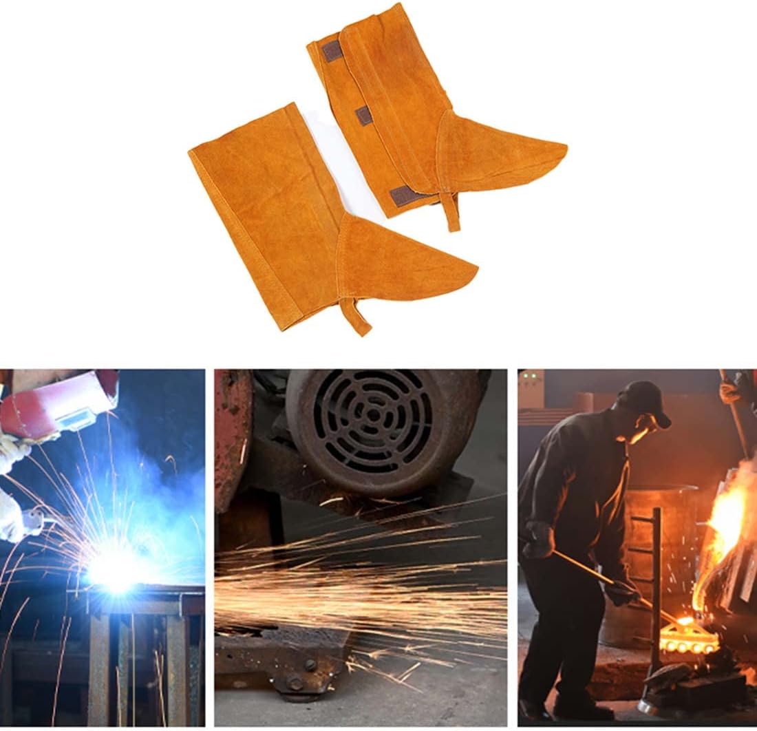Made from high quality suede cowhide and well designed. It prevents your feet from being burned by sparks when welding or sanding, as well as your trousers and shoes from getting burnt.