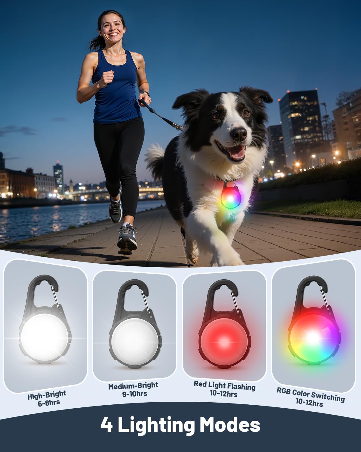 【100LM Super Bright Dog Lights for Night Walking】 The 100LM high brightness of dog collar light makes it easier to walk your dog at night, and with 600m visibility, you can quickly know where your dog is in the dark, providing safety for your pet. This dog light can also be used in night running, hiking, cycling, camping.