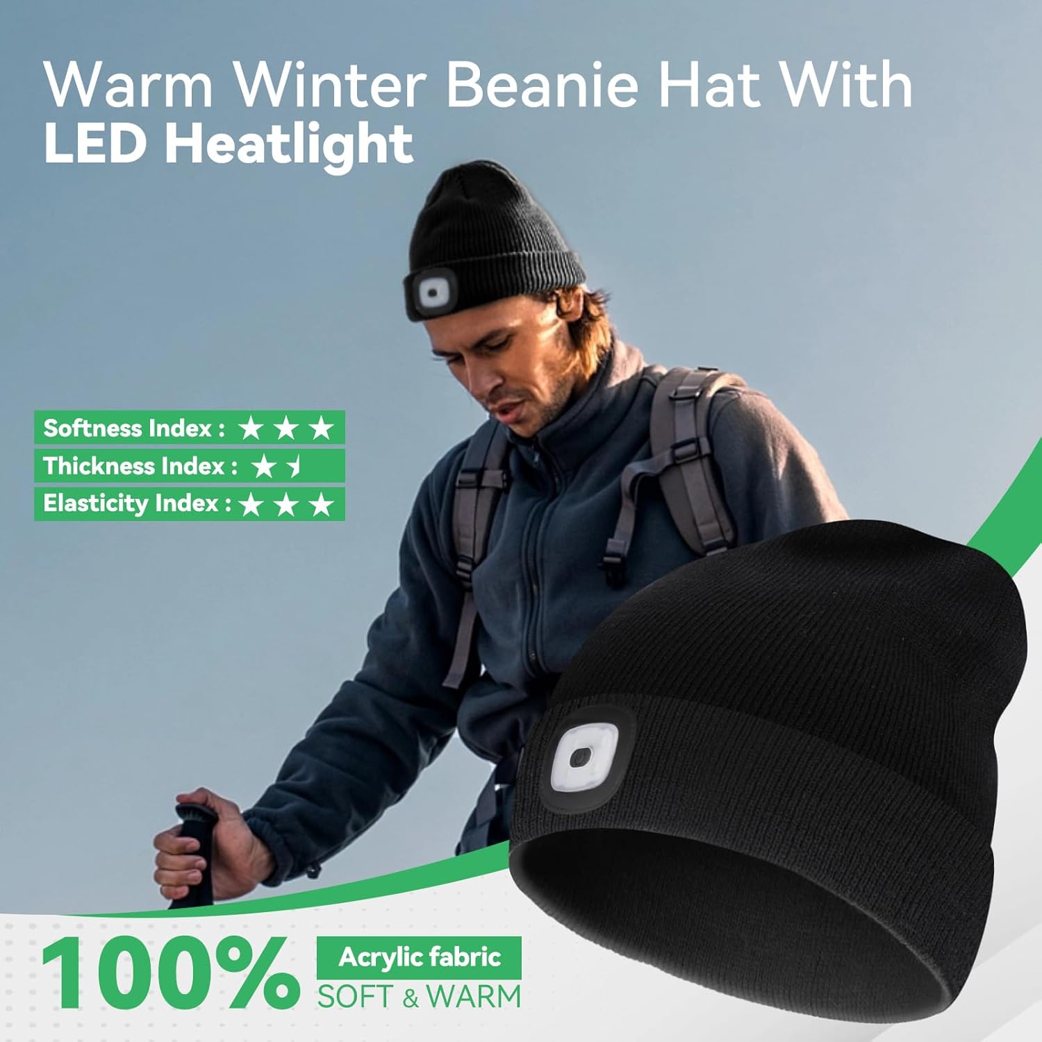 Birthday Gifts for Men: Crafted from 100% acrylic, our ultra-soft beanie delivers exceptional warmth and comfort during chilly winter nights. Not only does it keep your head toasty, but its built-in LED lights offer hands-free illumination, enhancing your safety and comfort in any environment. Both hand and machine washable for easy care