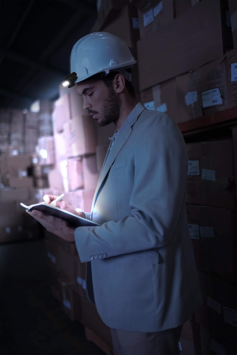 This head lamp clips onto any cap, hat or hard hat… plus includes a headband so you can wear it around your head. The lamp detaches from the headband/strap quickly making it small enough to fit into a handbag
