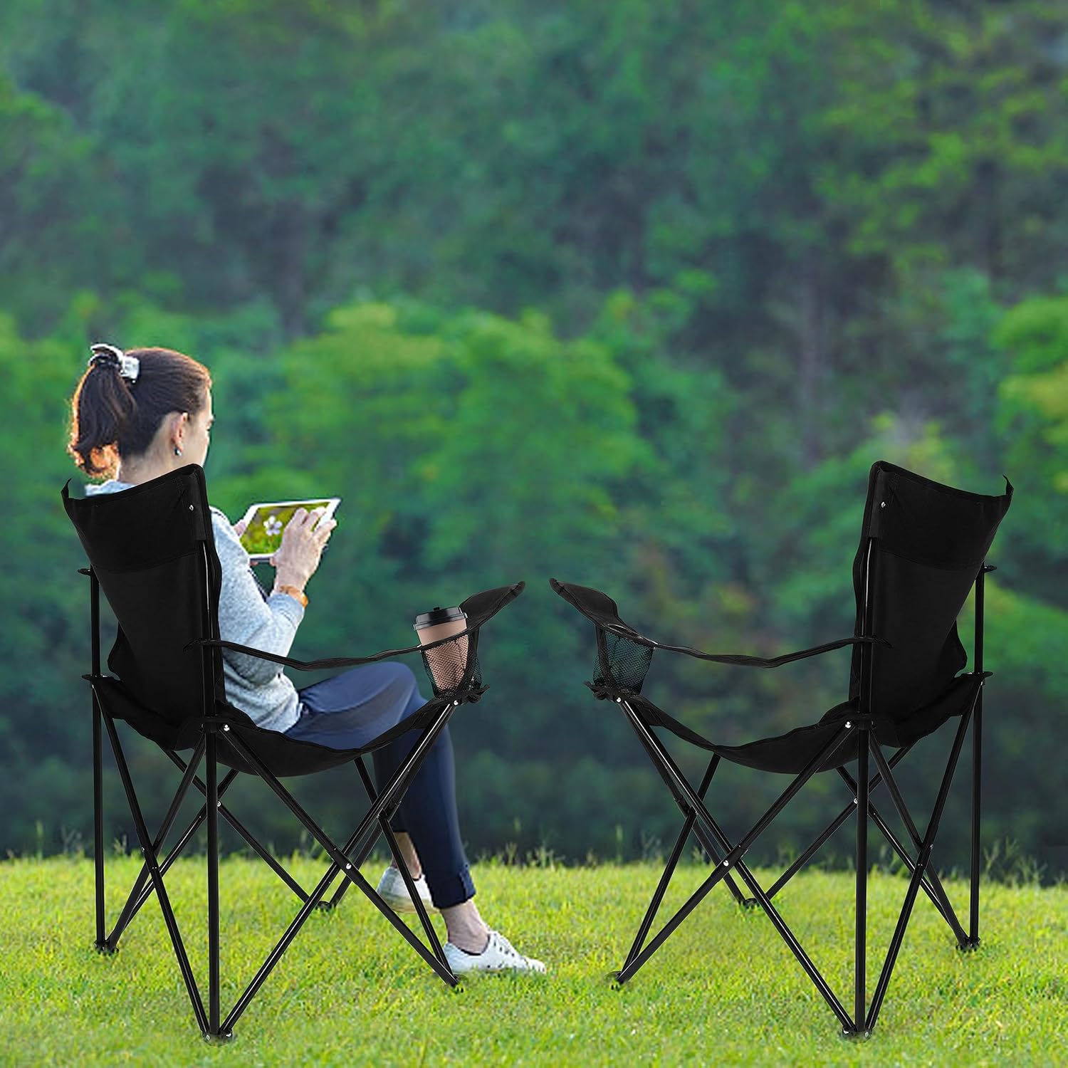 Portable and Easy Set Up, this folding camping chair is easy to set up and fold in seconds, no installation needed. It collapses down to 36.2” x 2.9” to pack in the carrying bag, take around anywhere you go, ideal for camper, hiker, backpacker, fisher