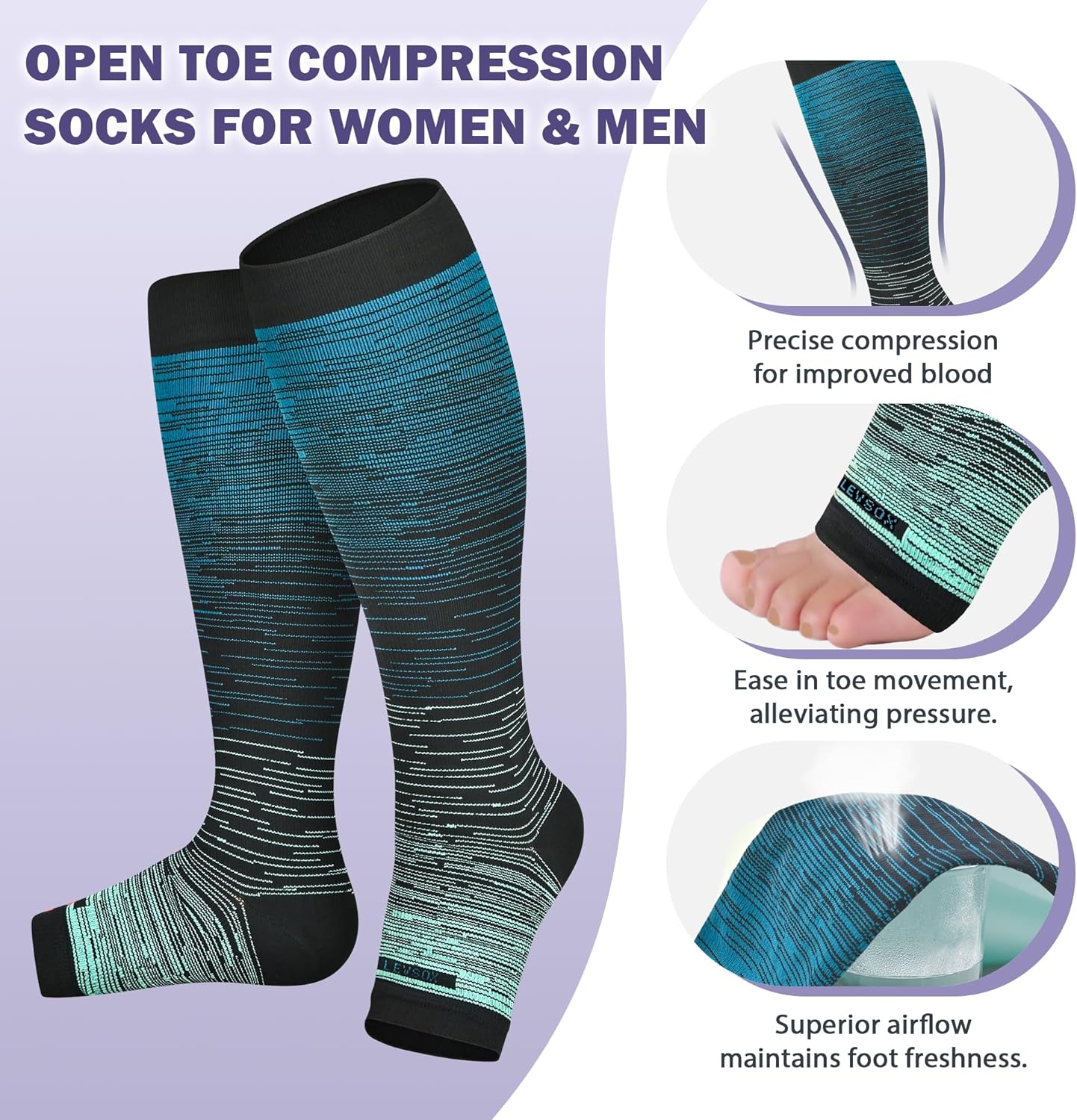 🥾 LEVSOX Open Toe Compression Socks for Women & Men 20-30mmHg Toeless Sock Knee High Support Stockings for Circulation Nurses Pregnant Travel — Review, Key Features & Current Price