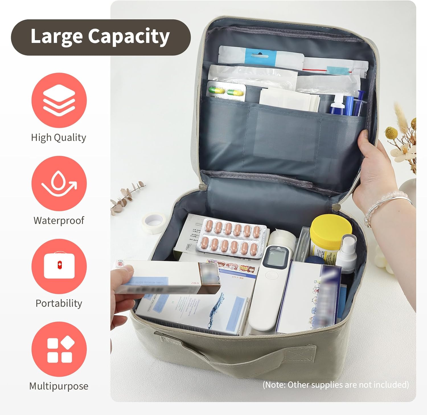 【 High Quality Material】: Made of 600D Oxford cloth fabric, the first aid bag has waterproof and moisture-proof functions, which is conducive to the preservation and carrying of medical supplies and medicines.