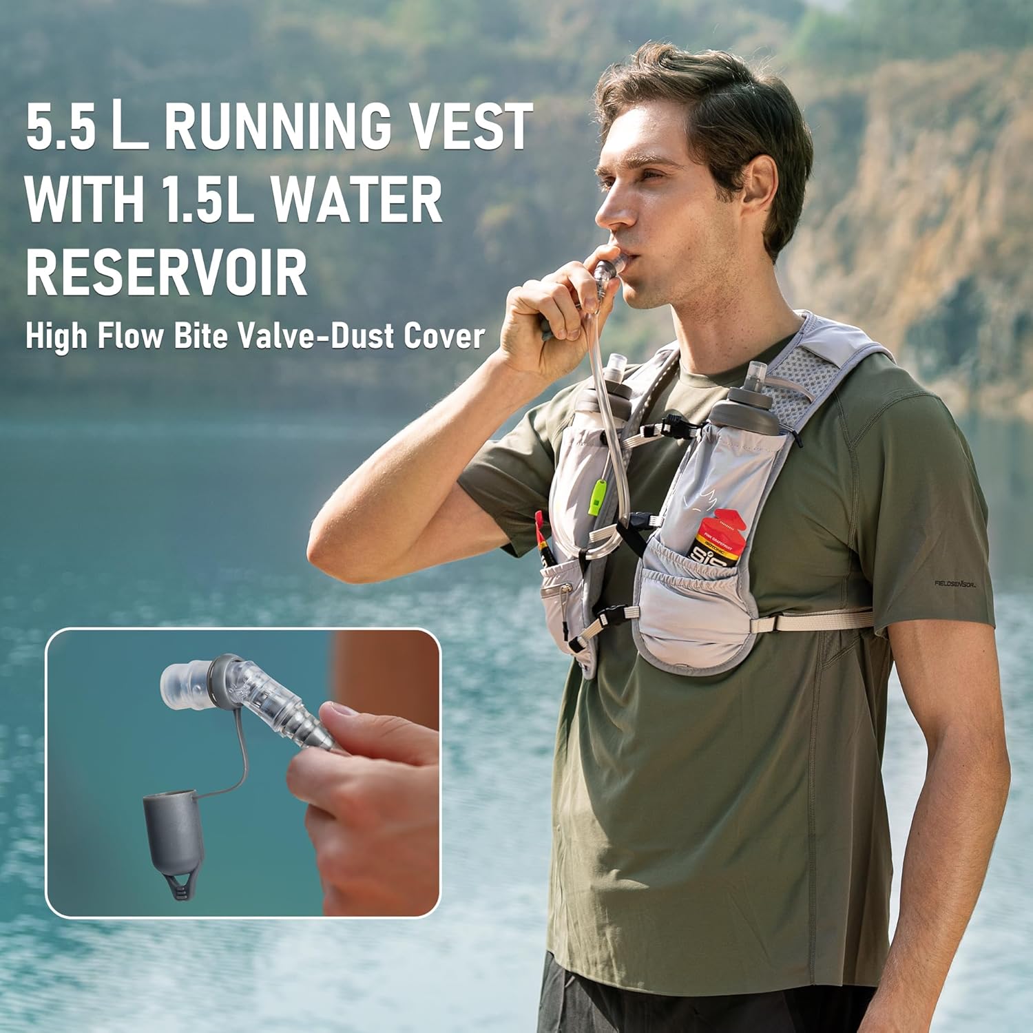 【Ultra-light and Breathable Material】: The running vest weighs only 180 g, so there is no burden when you wear it. It has a comfortable and close-fitting wrapping feeling, as if it were tailor-made for you. The soft seams are exquisitely processed and will not cause any friction to the neck and shoulders. You won’t feel uncomfortable even if you carry it for a long time. At the same time, it also has strong tear resistance