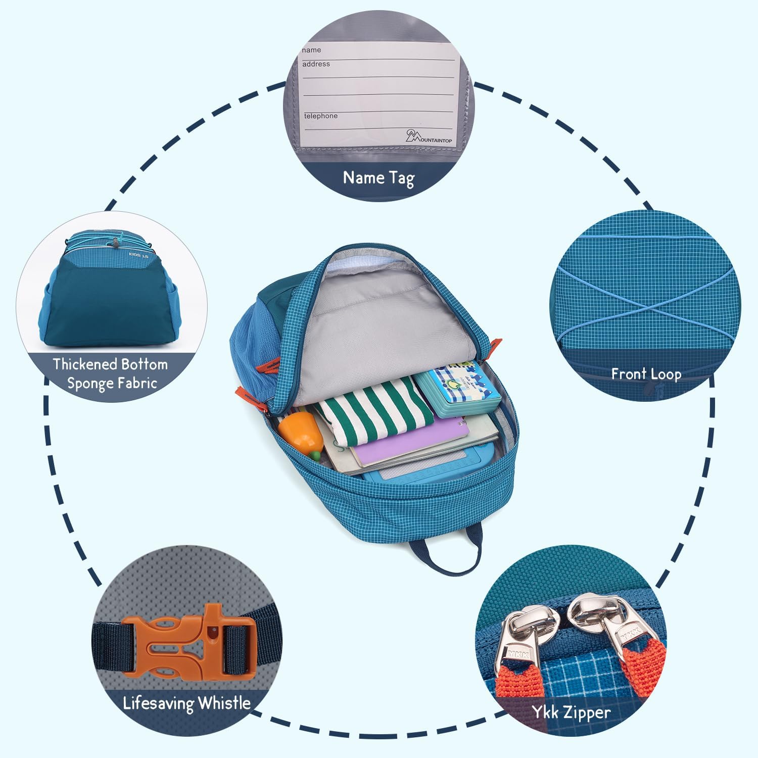 Adjustable Chest Strap: This small backpack features chest strap. It eases pressure on the child’s shoulders and waist, and secures the pack, preventing slippage even when the child runs. The chest – strap buckle has a whistle, useful as a toy or safety device.