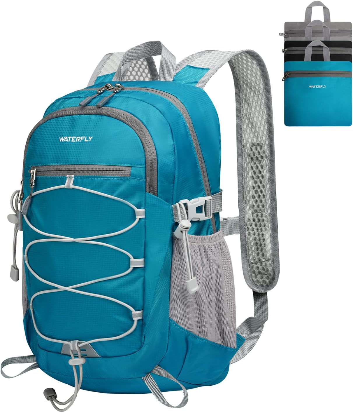 Lightweight And Foldable Design: This WATERFLY small lightweight foldable backpack weighs only 0.68 lb and offers a 15L capacity. Full dimensions: 16.54 x 11.02 x 4.72 in; folds down to a compact 7.87 x 6.3 x 2.16 in for easy storage in pockets, luggage, and handbags. It also fits most airline carry-on rules