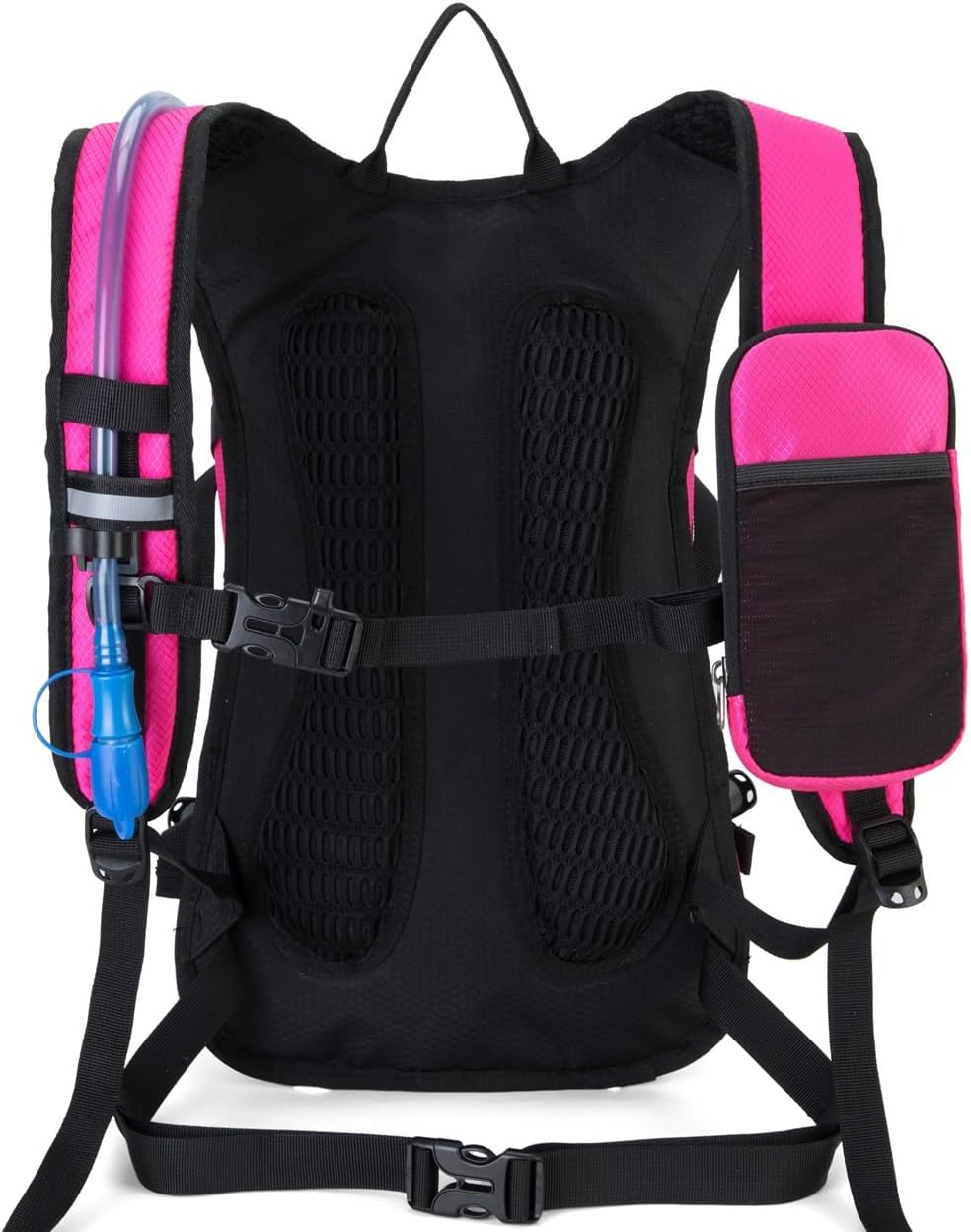 Luxurious Comfort & Storage: Experience unparalleled comfort with adjustable straps and a breathable back panel, tailored for long-lasting comfort. With three spacious compartments, two side mesh pockets, and a phone pouch on the shoulder strap, this hydropack offers ample space and convenient organization for all your essentials.