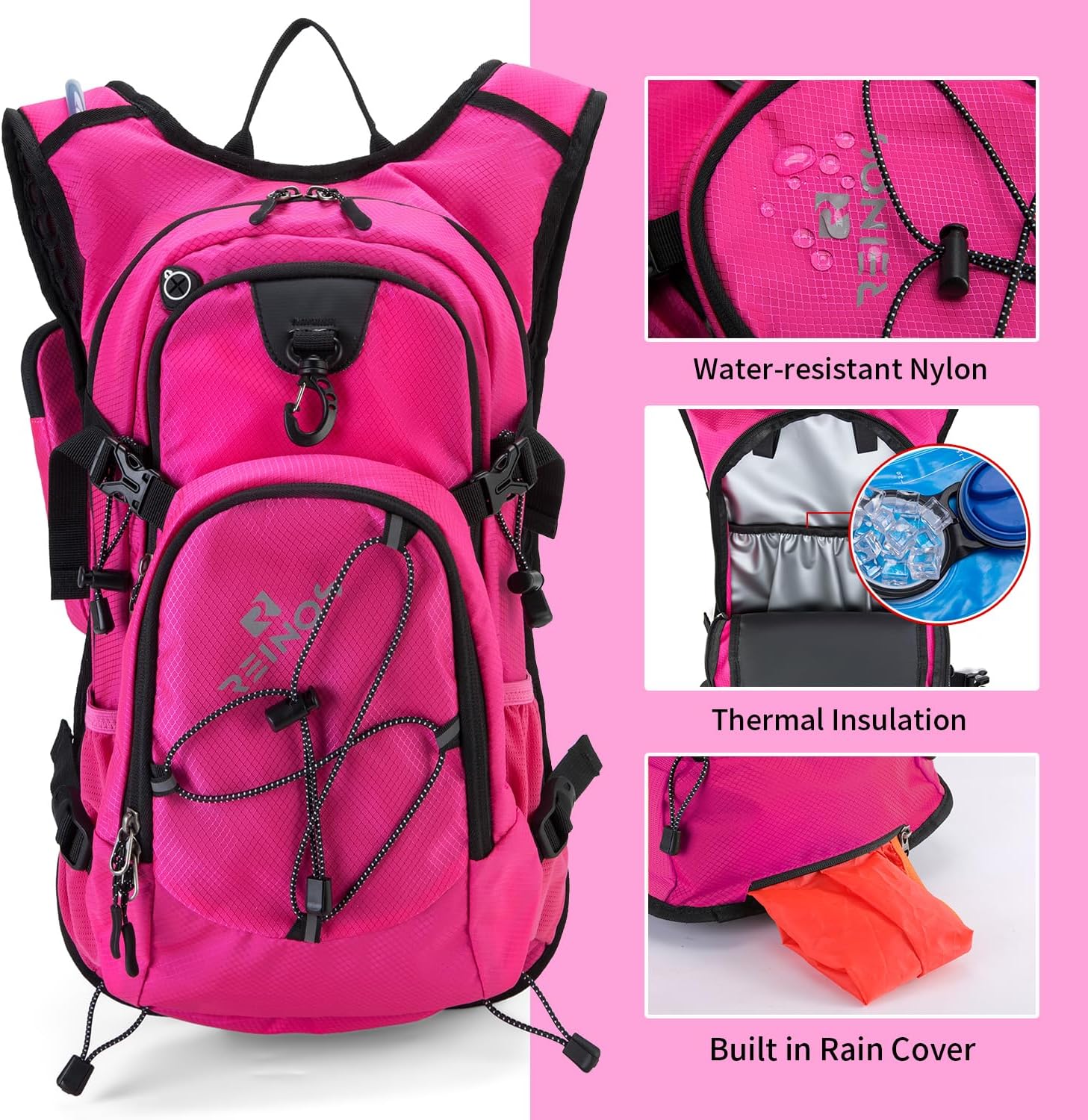 Outdoor conditions can change in an instant, and you need gear that can keep up. This hydration backpack is made from durable, water-resistant materials, ensuring your belongings stay dry and safe, even in unpredictable weather. Plus, the included built-in rain cover offers extra defense against the rain, so you can continue your adventure with confidence, no matter the weather.
