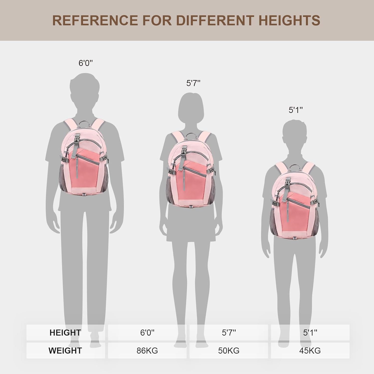 [Capacity&Dimensions]: The small hiking backpack boasts a spacious 20-liter capacity, perfect for everyday use and short trips. With dimensions of 10.3 inches by 7.4 inches by 16.9 inches and weighing just 1.4 pounds, it’s compact and lightweight, making it easy to carry.