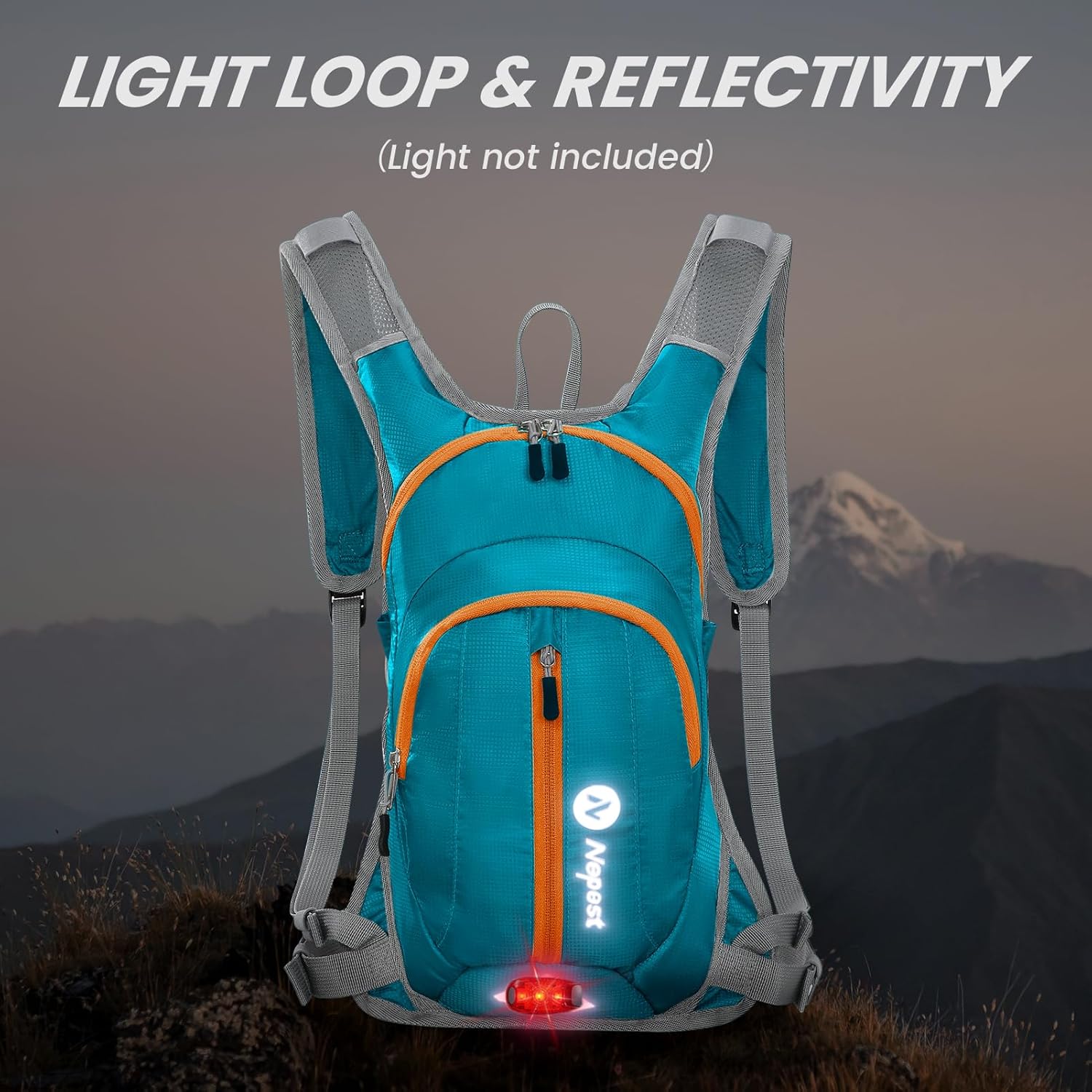 Compact Hydration Backpack: Nepest lightweight hydration pack made of 100% Nylon features anti-tear and wear-resistant. Ultralight hydration packs only have 0.64lbs, high quality ultra light design, let you travel without pressure