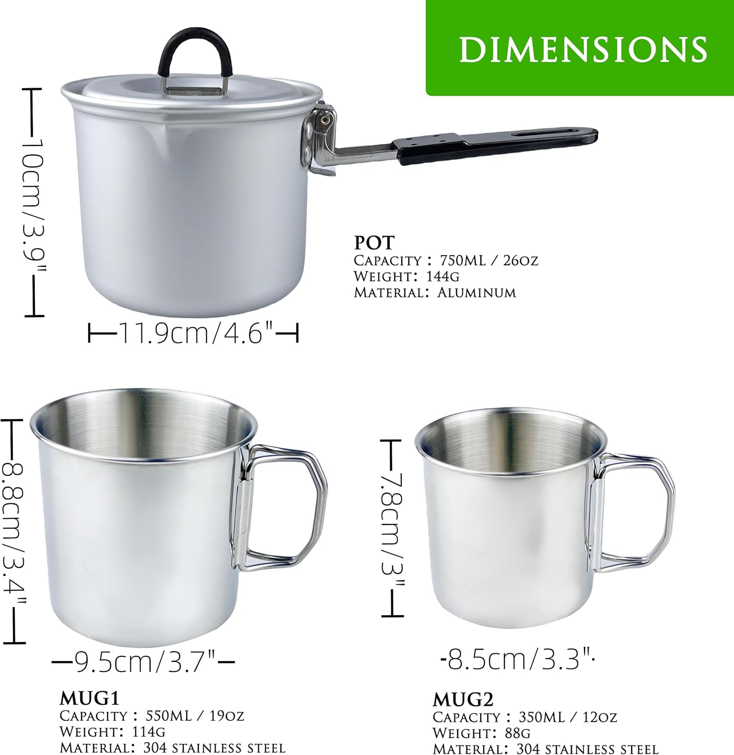 Nested design: 3-piece set, including 1 pot and 2 cups, space saving design