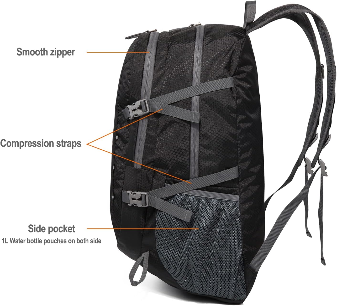 【Ultra Light & Foldable】 – This folding backpack has a capacity of up to 40 liters and weighs only 1 pound. It is lightweight and has a large capacity, and it can be folded into a small size for easy carrying and storage.