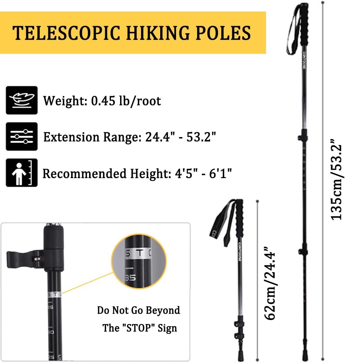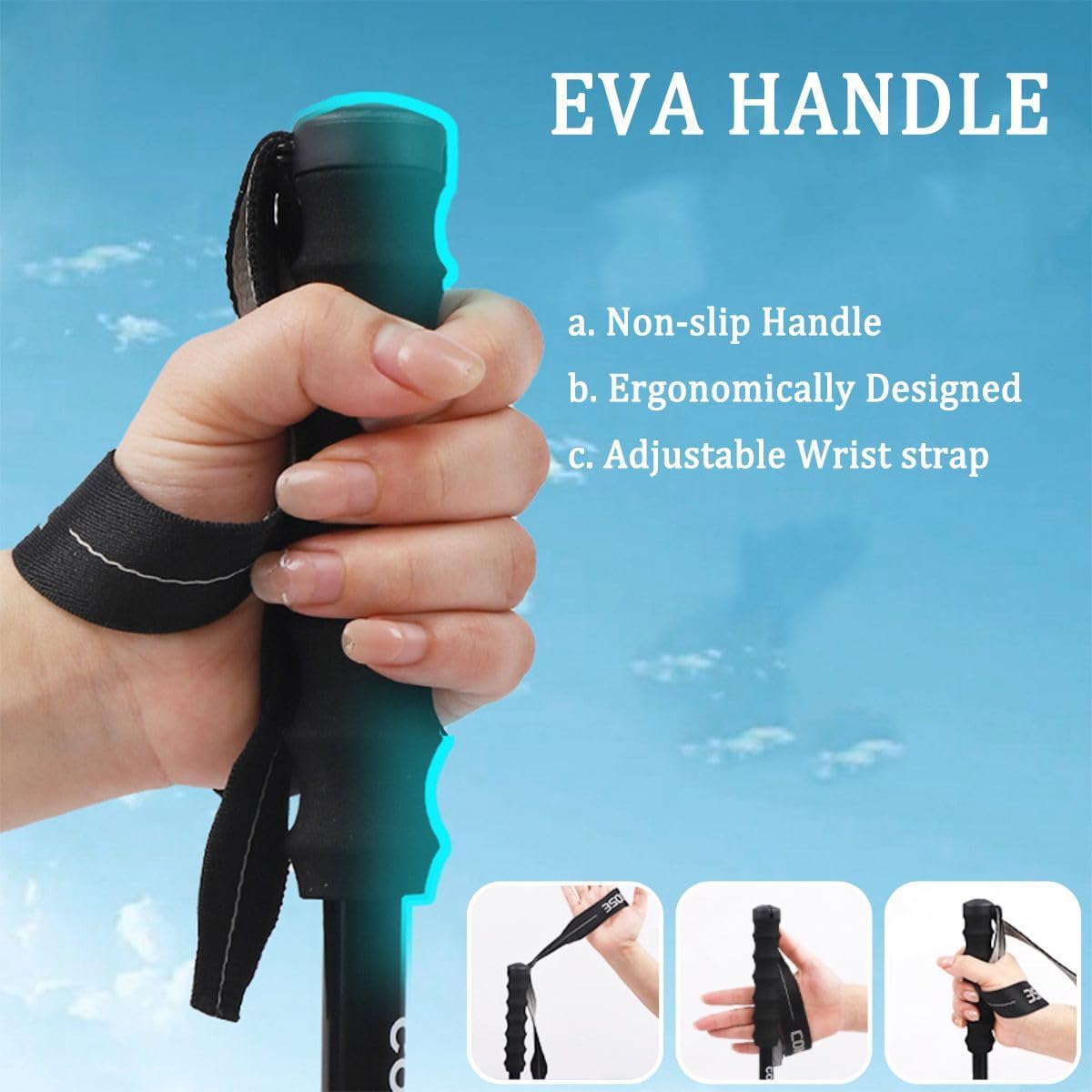 Adjustable Length: The trekking poles extend up to 53.2″ and can be flexibly adjusted to suit different terrains (such as uphill and downhill) and various usage needs.