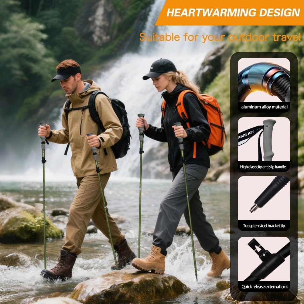 【Aluminum Alloy Construction, Sturdy & Durable】Crafted with an aluminum alloy shaft, it’s ultra-lightweight yet built to last. Rust-resistant, it holds up well in rain, snow, and rough outdoor conditions—tough enough for any adventure.