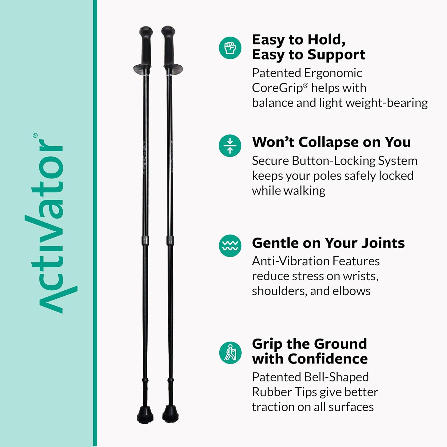 🥾 Urban Poling ACTIVATOR® Walking Poles for Balance and Rehabilitation – 1 Pair – Ergonomic CoreGrip™ Handles – Adjustable, Collapsible, and Lightweight for Stability and Recovery in Evening Black — Review, Key Features & Current Price
