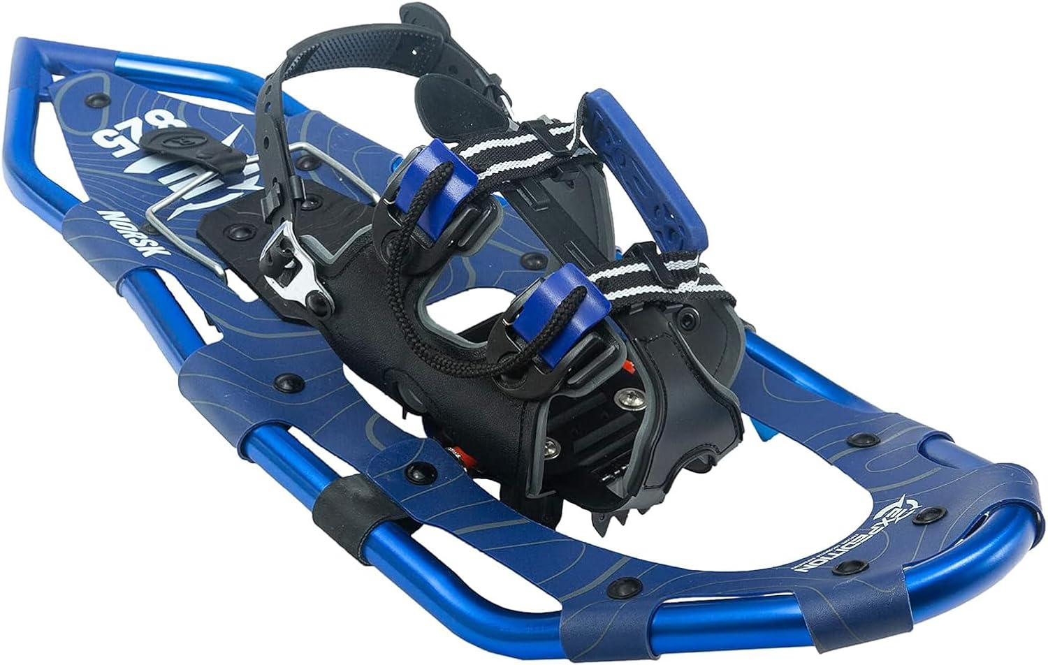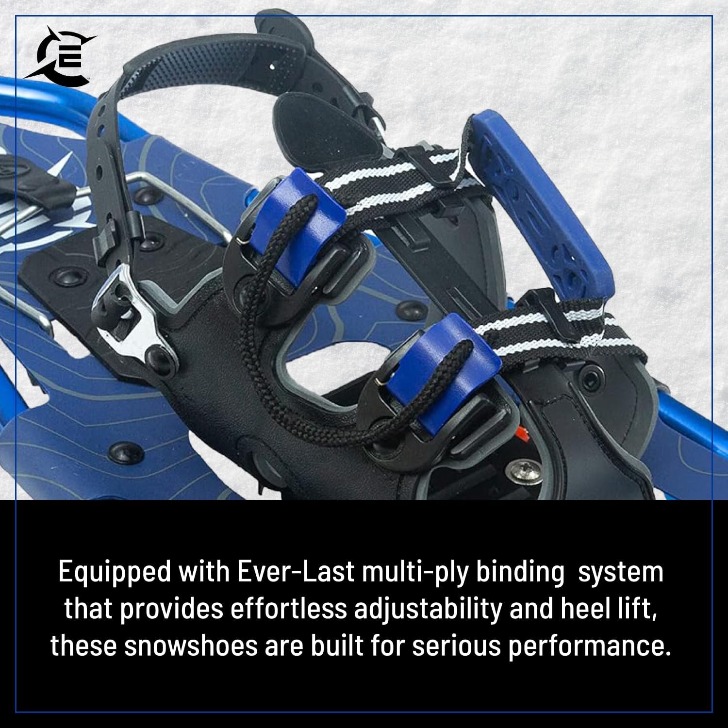 Lightweight and Strong: These snowshoes for men and women are built with 6063 Aluminum Anodized Blue Frame with Ever-Last multi-ply binding, quick set binding system and dual deep cleat system.