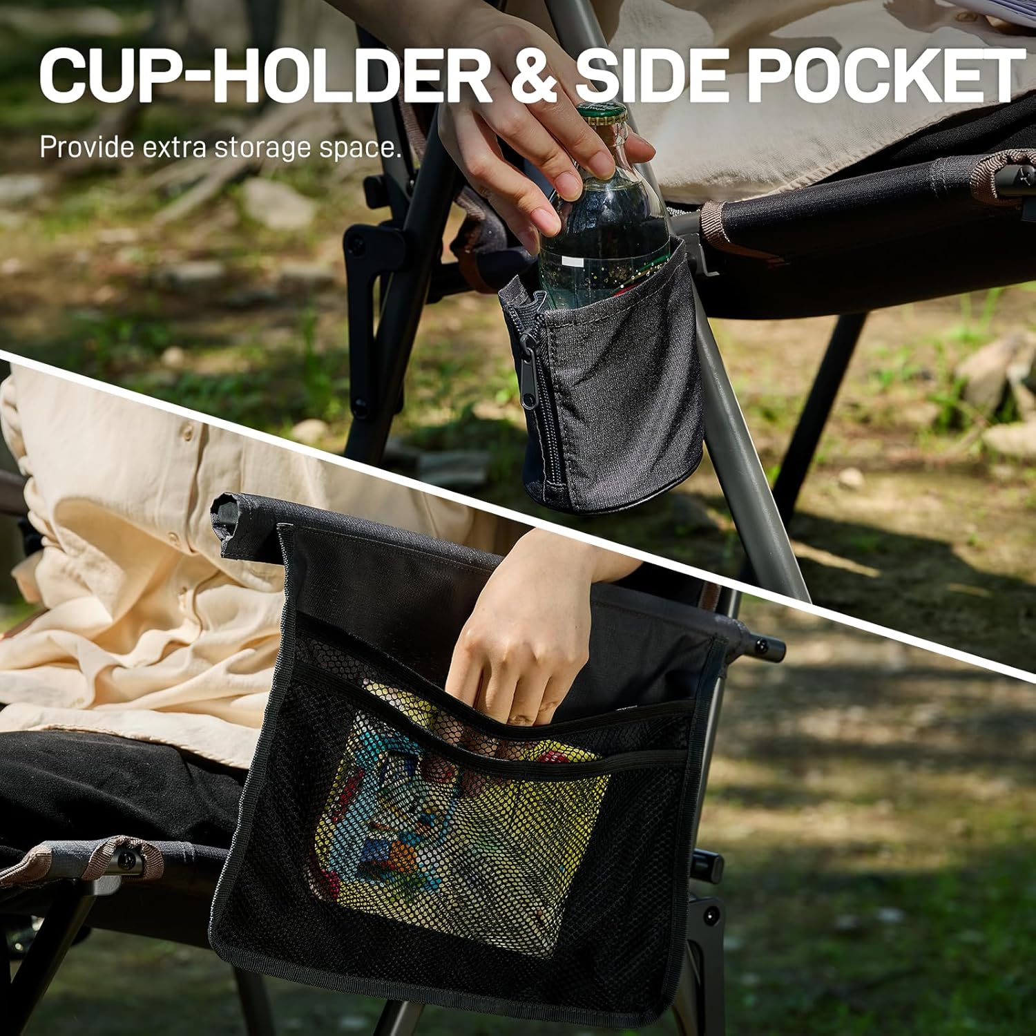 ใ๐๐จ๐ง๐ฏ๐๐ง๐ข๐๐ง๐ญ ๐๐ญ๐จ๐ซ๐๐ ๐ & ๐๐๐ฌ๐ฒ-๐๐๐ญ๐ญ๐ข๐ง๐ ๐ฎ๐ฉ ๐๐ซ๐ฆ๐ซ๐๐ฌ๐ญ๐ฌใThis folding camping chair features a side pockets and a cup holder for extra storage. Firm armrests provide stable support for effortless sitting/standing โ ideal for elderly needing extra stability.