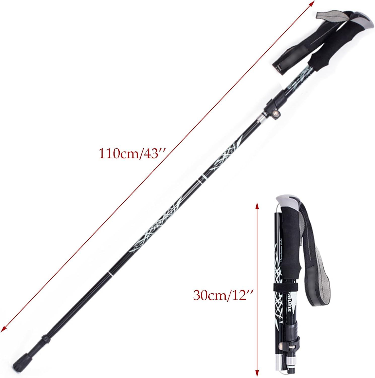 [Collapsible & Lightweight]–The trekking poles can be folded into 4 sections,only 30cm/12 Inches when disassembled,weights 0.25kg/0.44lbs per pole.Small and light enough to be stored within your backpack or fit well in any suitcase.