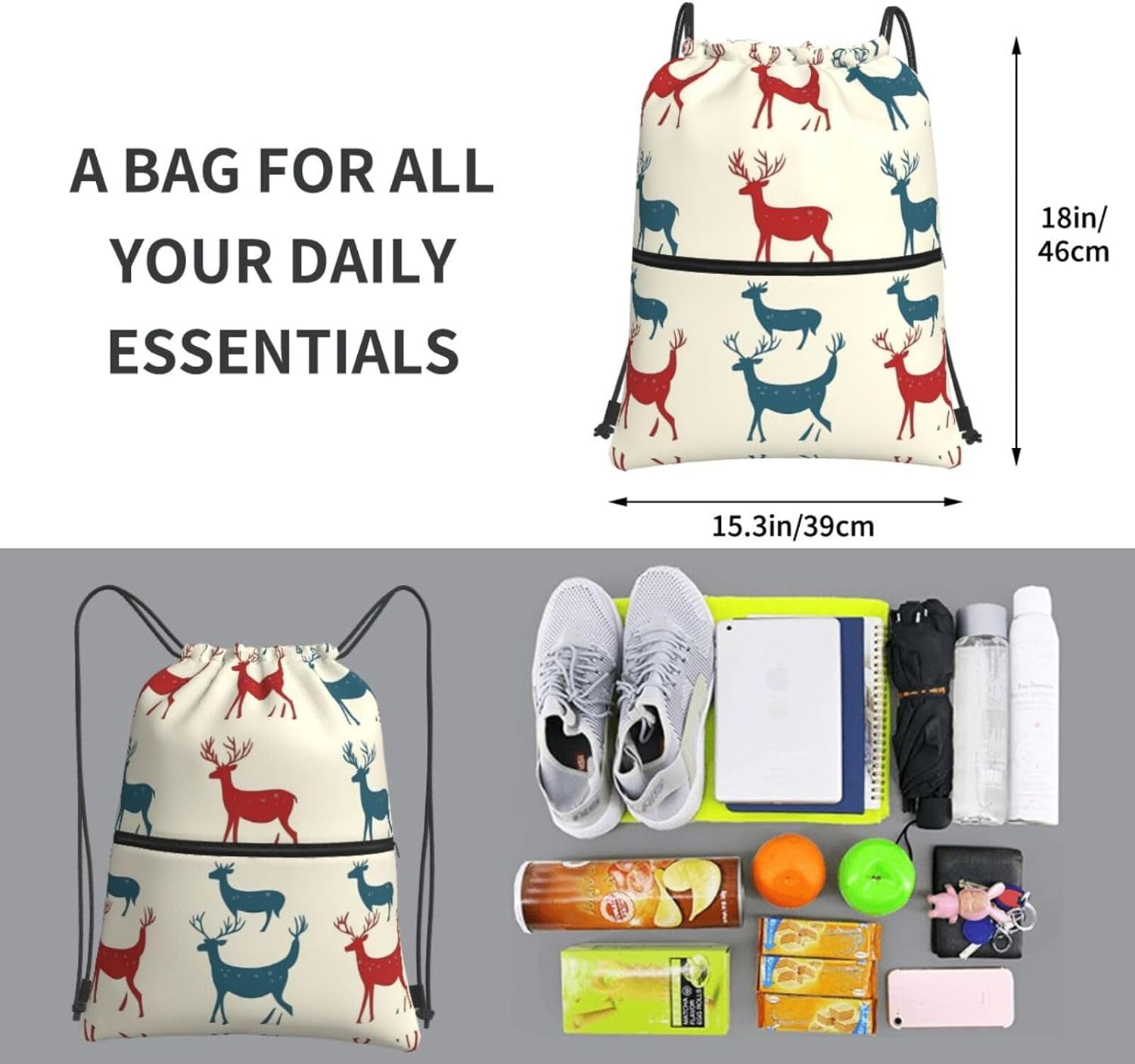 Stay organized on the go: Keep your essentials secure and easily accessible with the convenient drawstring design and multiple pockets of the GGNKDL Deer’s gait Pattern Drawstring zipper Backpack. Perfect for everyday use or travel.