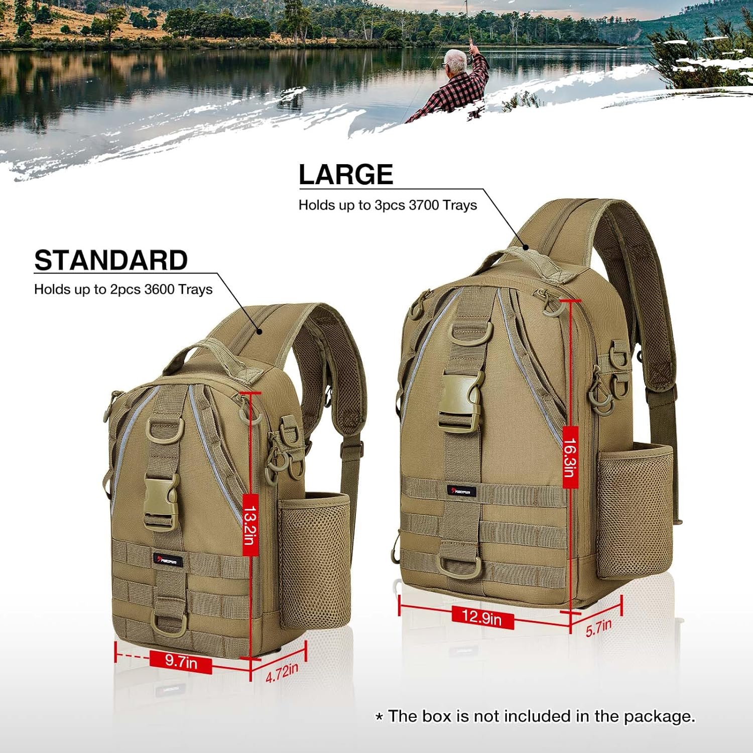 Multiple Storage Compartments: The large size of Travel X outdoor storage bag can hold up to 3 3700 boxes, while the standard size is capable of 2 3600 boxes in the main compartment. Besides the main compartment, Travel X also has two external front pockets and a back pocket, which can be used to organize your small tackle like fishing lines, soft plastics or filming accessories for your trip