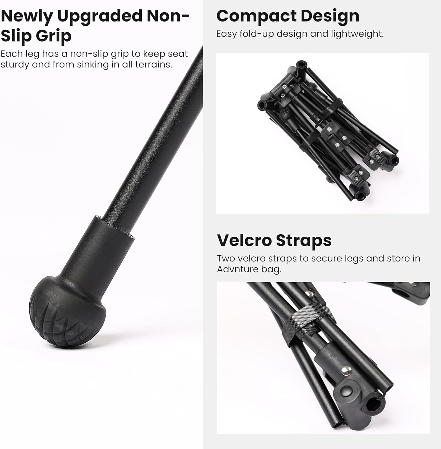 STABLE DUAL TRIANGULAR BASE – Engineered for superior support, the dual triangular frame evenly distributes weight, preventing the chair from sinking into soft ground while maintaining stability on any surface.