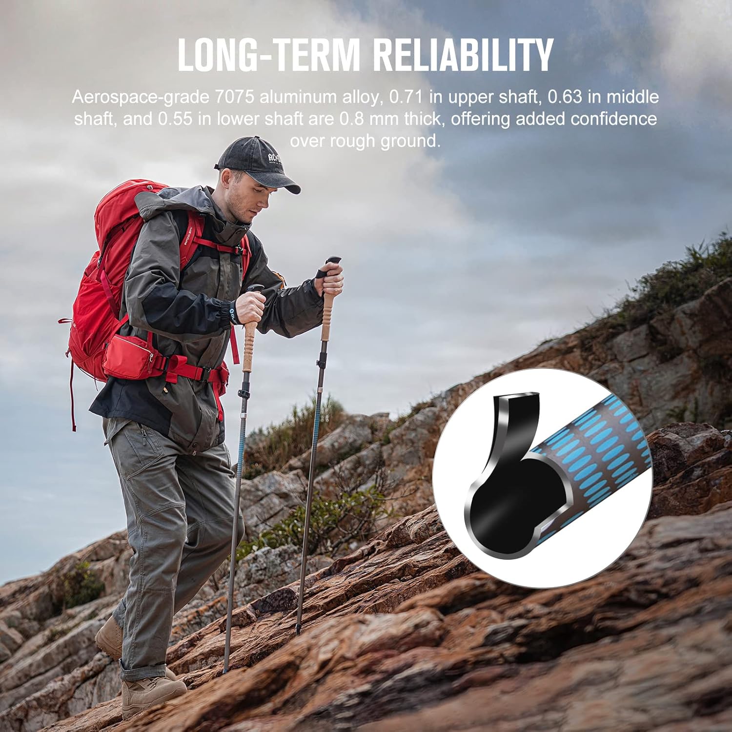 【SECURE HOLD】 Ergonomic, soft-touch EVA foam grips offer a comfortable, secure hold and wick away sweat. EVA foam grip extensions provide confidence on steep terrain or when traversing.