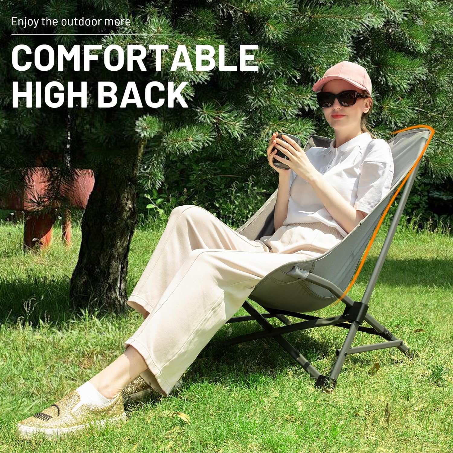 STURDY MATERIAL: Our high-back camping chair is crafted from sturdy 600D fabric and a robust steel frame; its X-shape structure ensures stability and long-lasting durability.