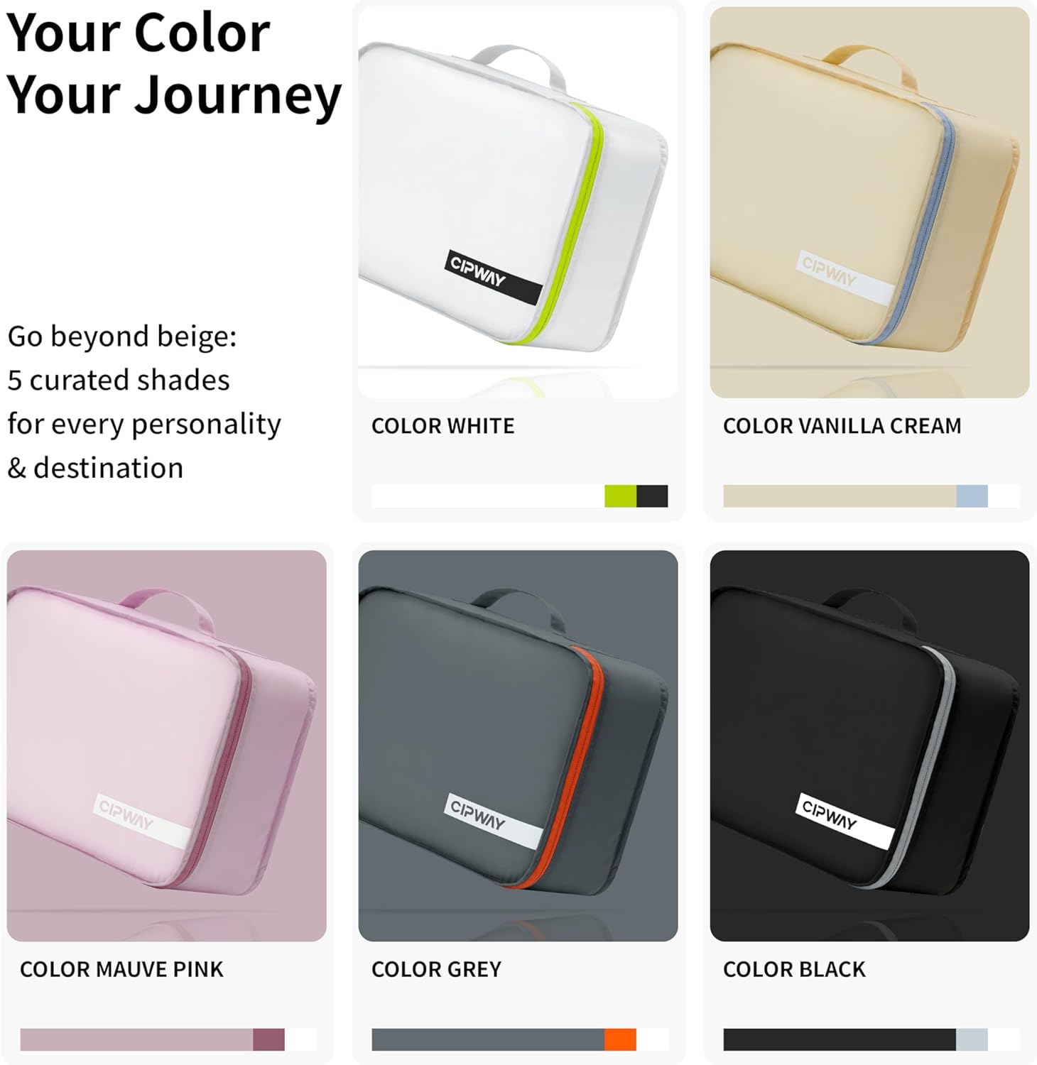 Started from 2018, Cipway expands items from packing bags to travel organizers, being trusted in 20+ countries worldwide.