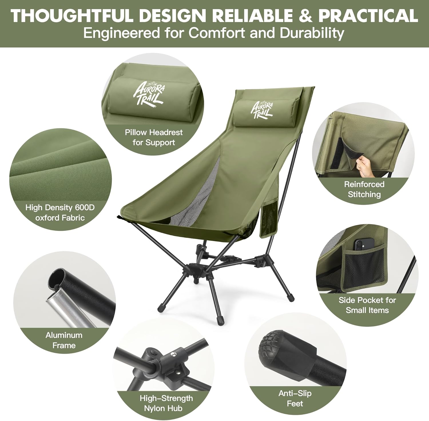 🥾 AuroraTrail High Back Folding Camping Chair with Pillow – Lightweight Portable Outdoor Chair with Cup Holder & Carry Bag, Sturdy Aluminum Frame Supports up to 374 lb for Camping, Hiking & Festivals — Review, Key Features & Current Price