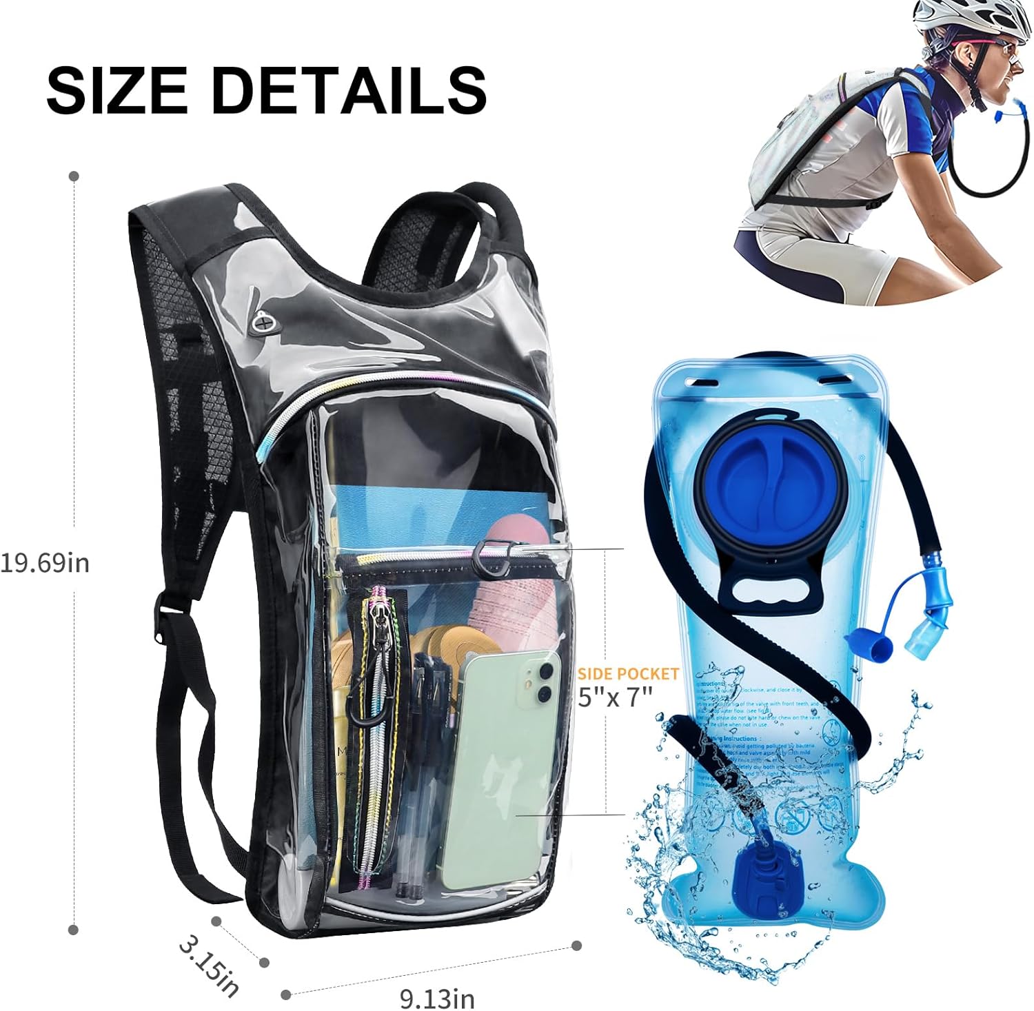 [STYLISH AND MULTIFUNCTIONAL DESIGN]:Water pack,hydropack,water hydration backpack,rave water bags clear,concert bag.Hydration backpack made of ultra-light waterproof material,Using holographic laser design,it is very gorgeous and fashionable.The bright colors,unique styles and patterns are perfect for you to attend various parties